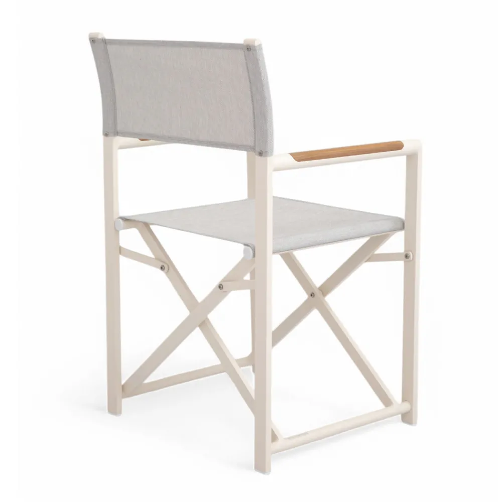 Die Textilene Sitzfläche und Rückenlehne sorgen für maximalen Komfort auch an den heißesten Tagen, während die Naturholzdetails an den Armlehnen einen Hauch von Raffinesse hinzufügen. Das klappbare Design macht diesen Stuhl extrem praktisch und vielseitig, perfekt für Abendessen im Garten oder Momente der Entspannung auf der Terrasse.