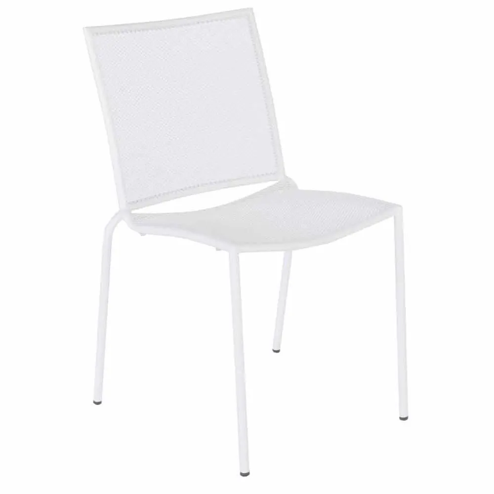 Stapelbarer Gartenstuhl aus weiß lackiertem Stahl, 4 Stück.