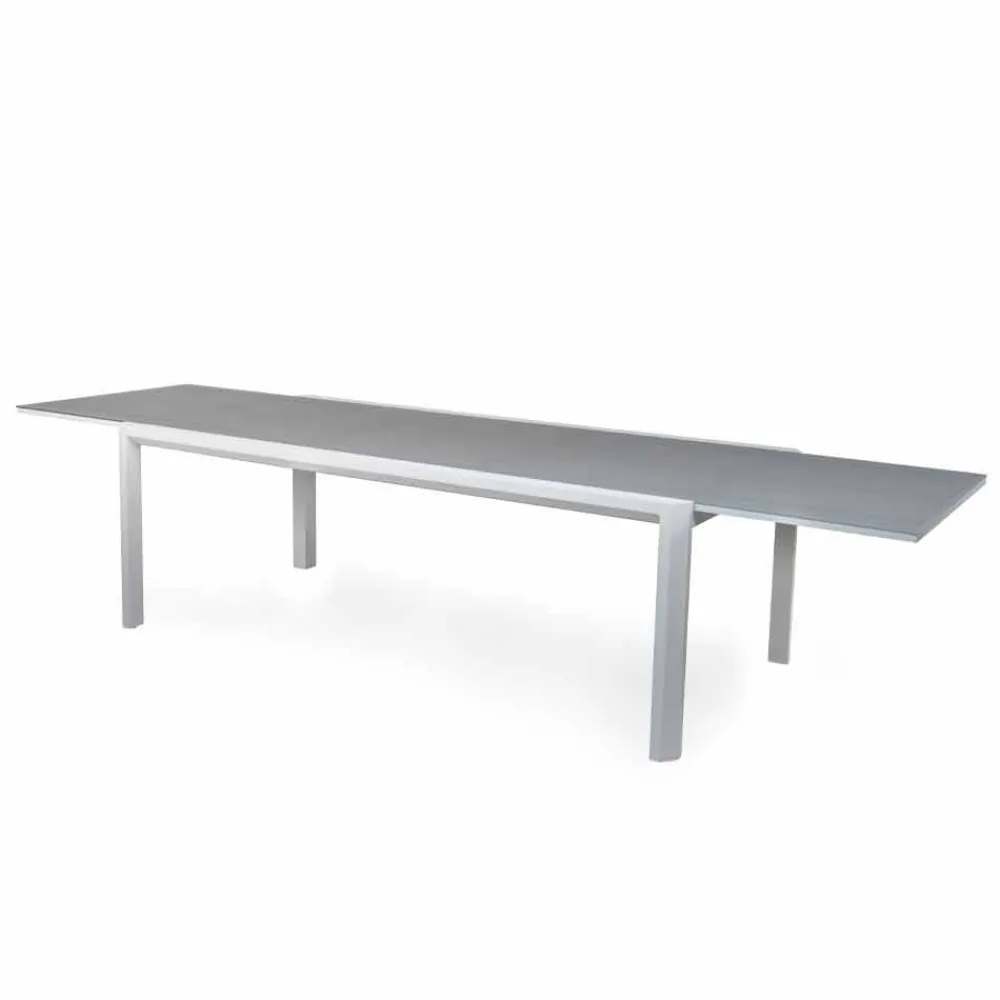 Esstisch im Freien ausziehbar auf 340 cm, Aluminiumstruktur in 3 Ausführungen und Glas- oder Laminamplatte.