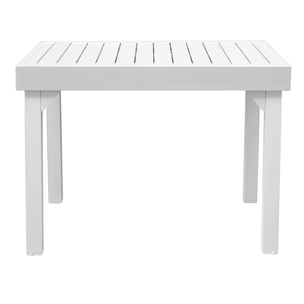 Bringen Sie Stil und Funktionalität in Ihren Außenbereich mit diesem weißen Aluminiumtisch mit modernem, minimalistischem Design. Seine Lattenrostplatte verleiht ihm nicht nur ein elegantes Aussehen, sondern ist auch praktisch, langlebig und leicht zu reinigen.