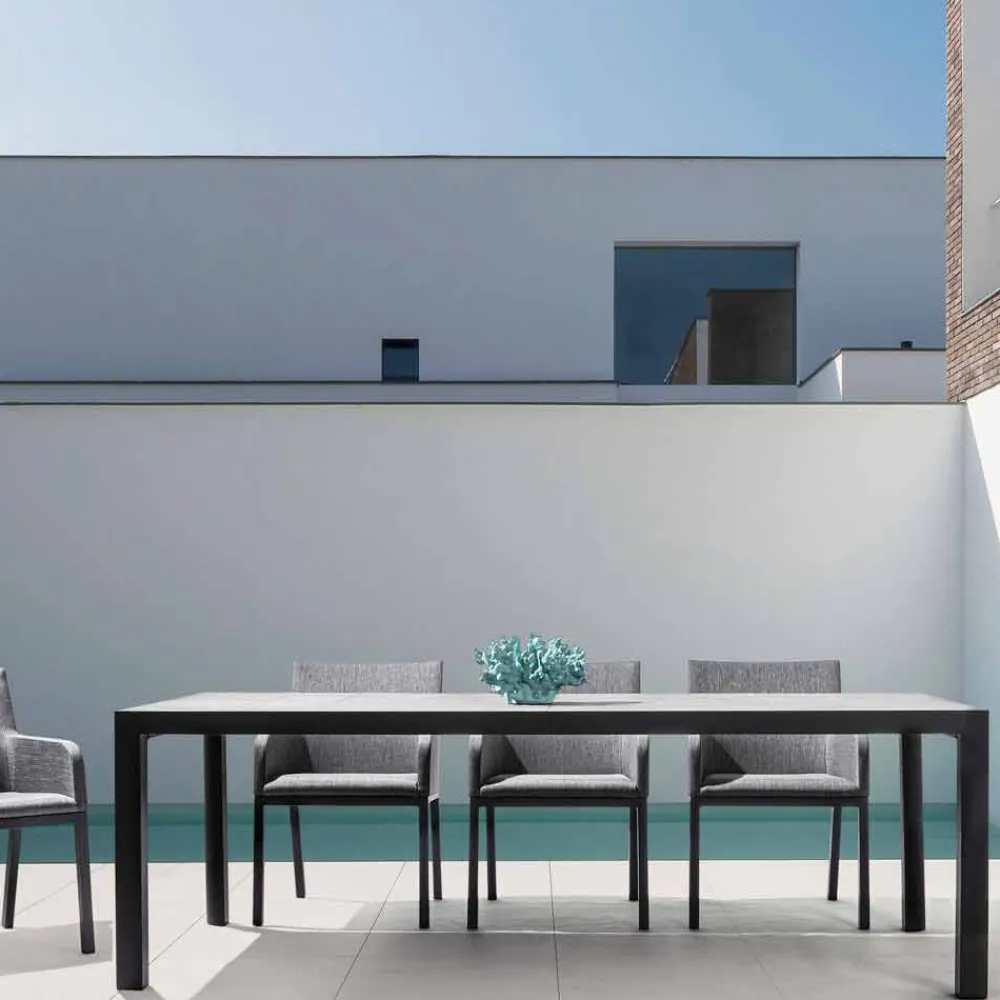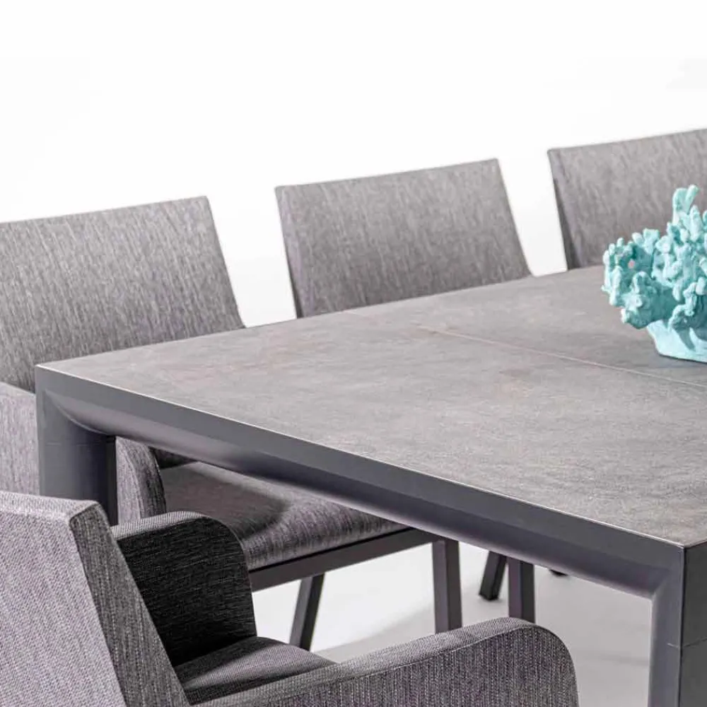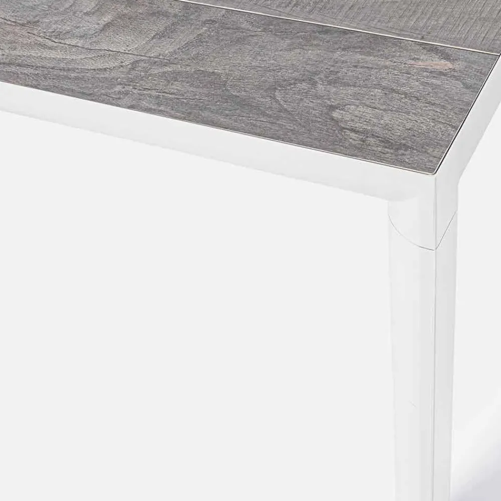 Aluminiumstruktur , pulverbeschichtet (Polyester). Keramikplatte (10 mm dick). Beine zum Zusammenbauen .