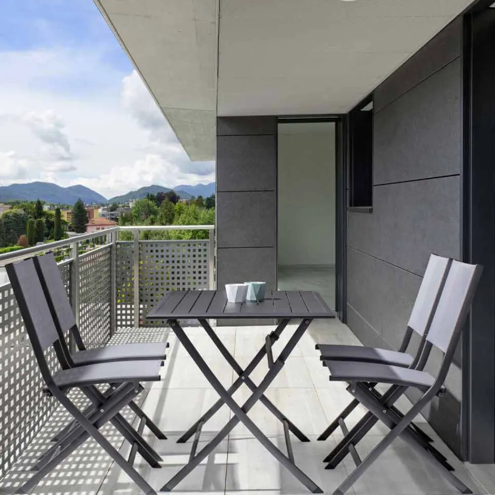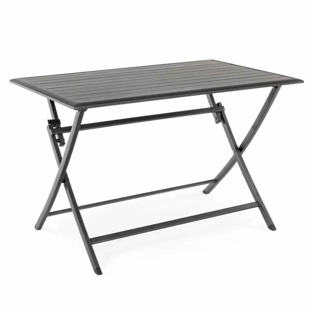 Klappbarer Esstisch im Freien mit Aluminiumstruktur.