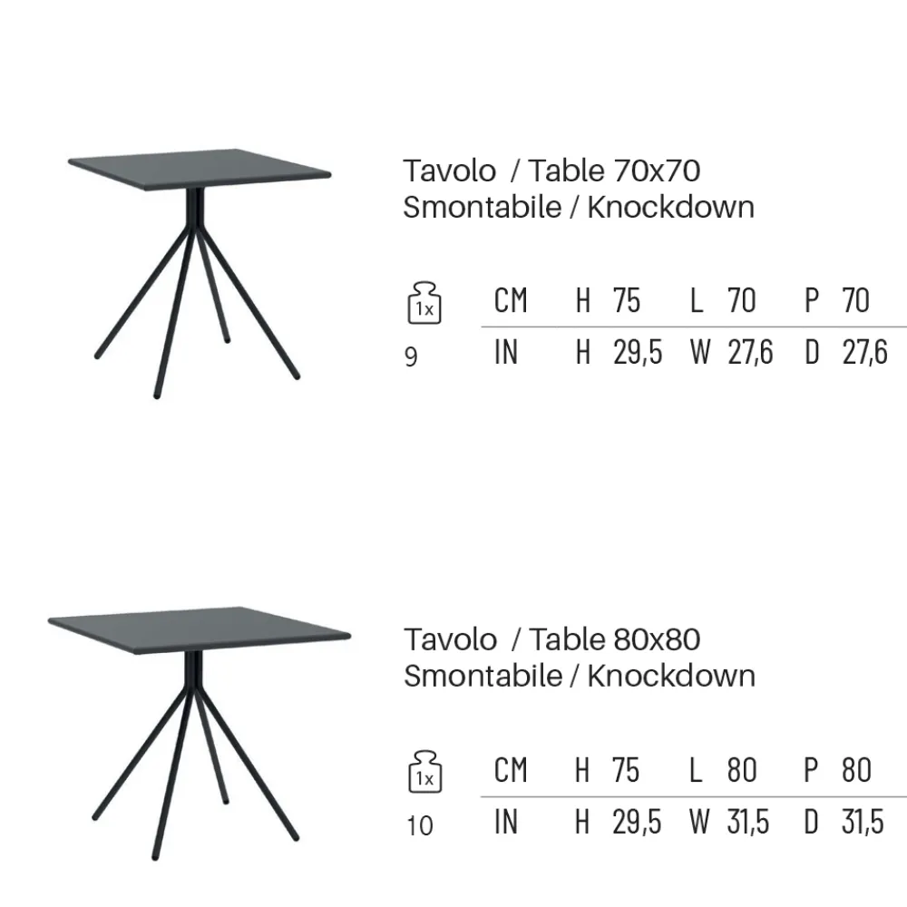 Quadratischer Gartentisch mit verzinkter Stahlstruktur, 100 % Made in Italy