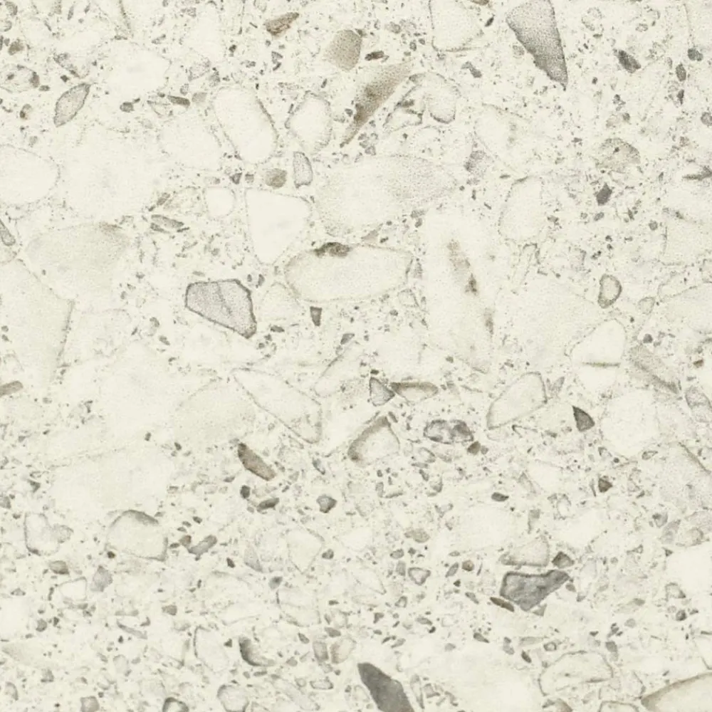Dieser Tisch für den Außenbereich ist ein wahres Meisterwerk des zeitgenössischen Designs, das jedem Außenbereich Helligkeit und Stil verleiht. Die Tischplatte aus hochwertiger Keramik ahmt die klassische Schönheit von weißem Terrazzo nach, bestreut mit mehrfarbigem Granulat, das ihm Tiefe und visuelles Interesse verleiht.