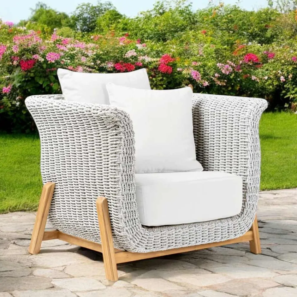 Gartensessel aus Teakholz und handgeflochtenem Seil
