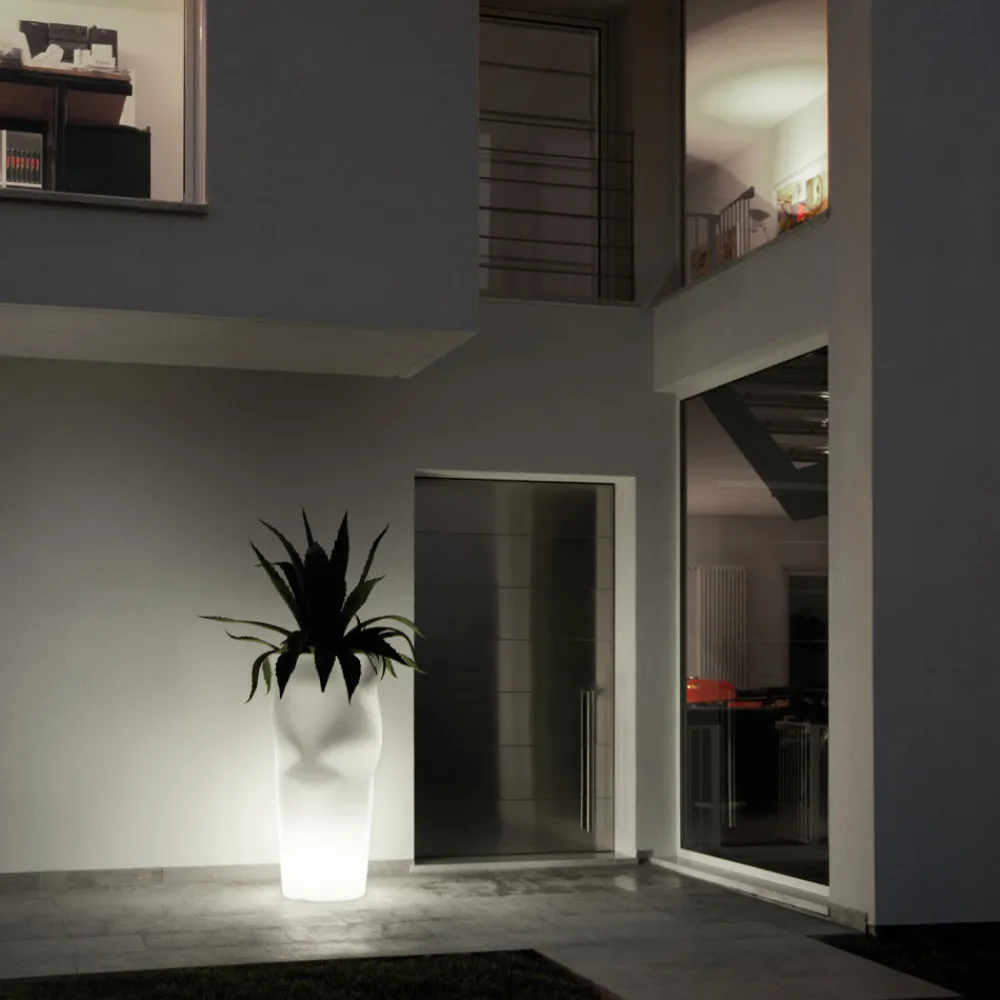 Leuchtende Außenvase aus Polyethylen mit LED-Licht Made in Italy.