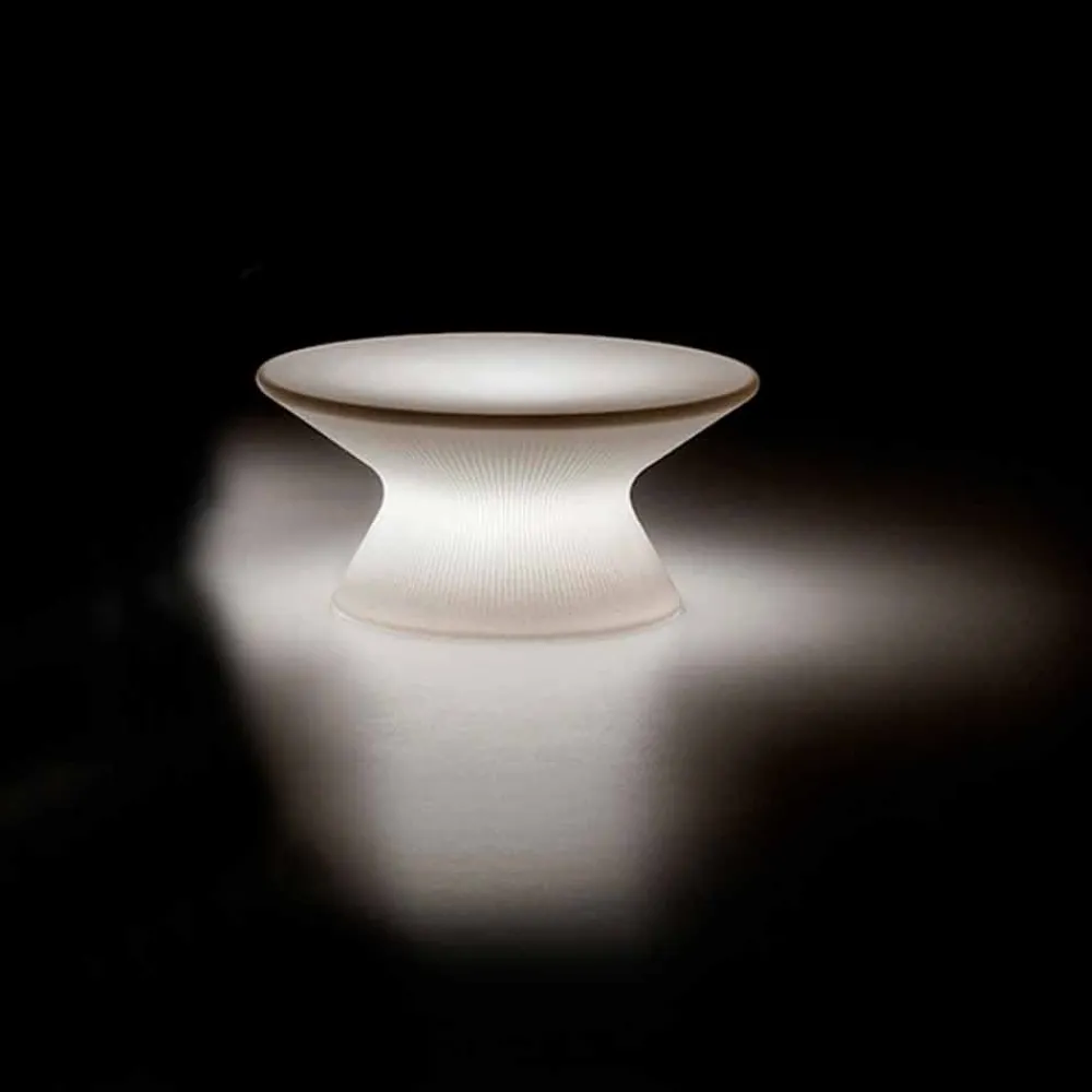 Garten Couchtisch made in Italy aus Polyethylen . Seine einfache und minimale Struktur wird durch die besondere gestreifte Oberfläche, die das gesamte Design charakterisiert und ihm eine originelle Note verleiht, bereichert und einzigartig gemacht. Funktionell und modern erweist sich dieses Möbelzubehör für den Außenbereich als äußerst vielseitig und eignet sich daher ideal für Umgebungen wie Gärten, Terrassen, Veranden, aber auch für Vertragsumgebungen, in denen es in der Lage ist, die Ästhetik mit Persönlichkeit zu vervollständigen. Um die Besonderheit seines Aussehens zu erhöhen, wird das LED-Licht hinzugefügt, das die Basis des Tisches beleuchtet und an Abenden mit Freunden eine wunderbare Atmosphäre schafft.