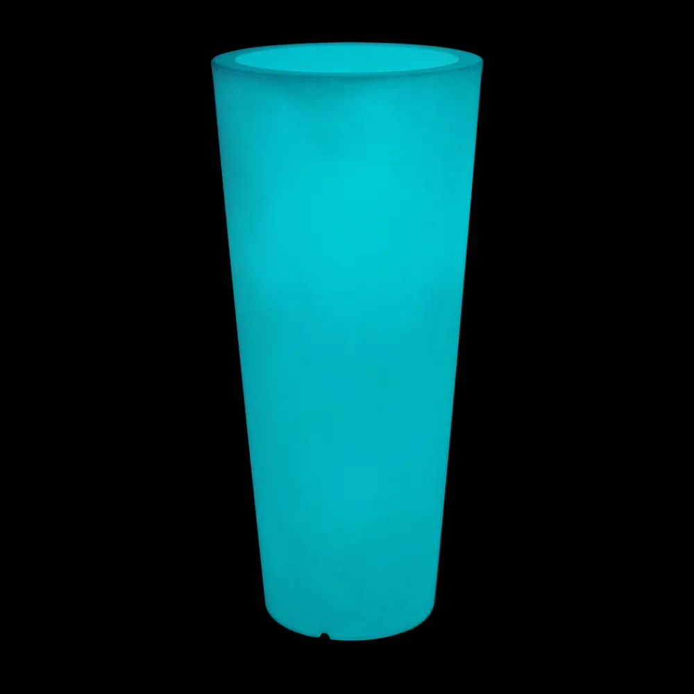 Runde, fluofarbene Gartenvase mit Licht Made in Italy