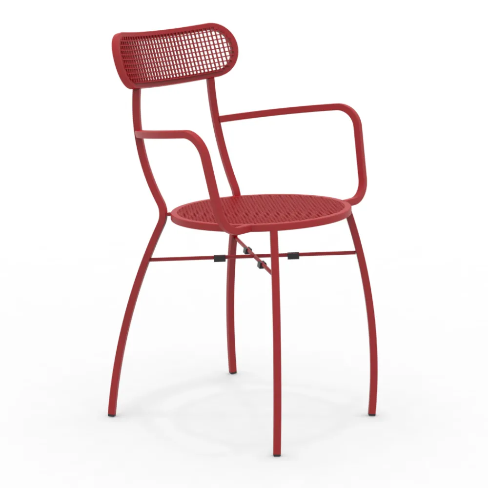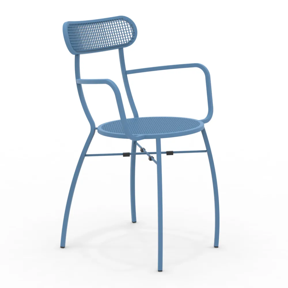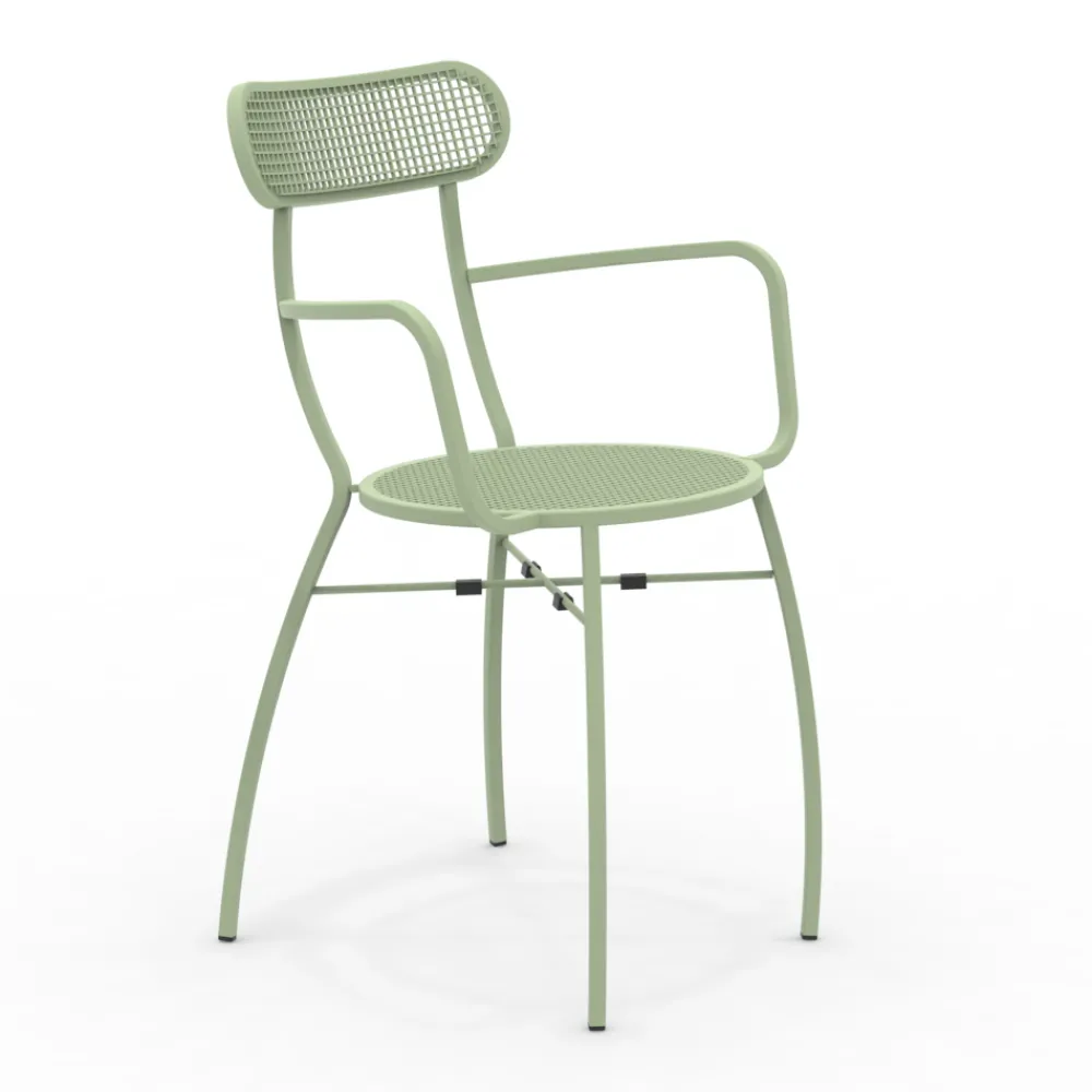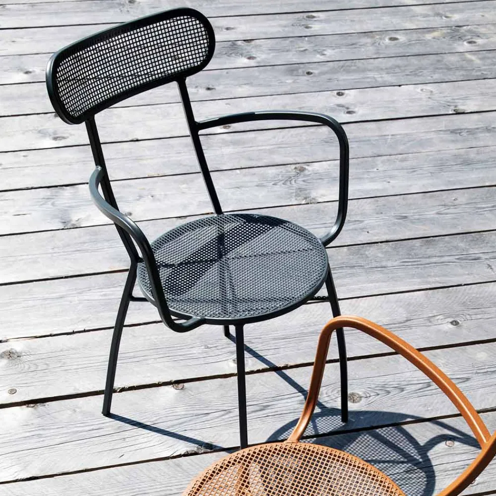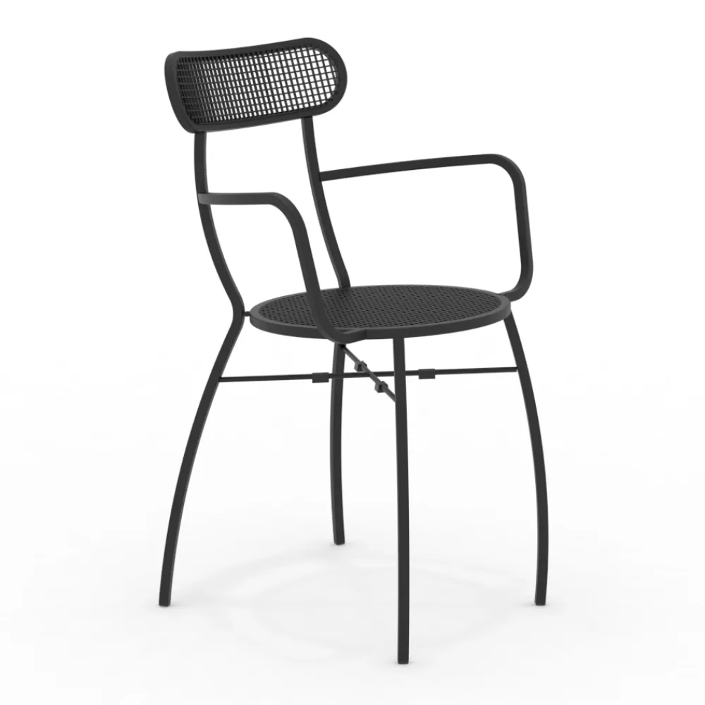 4 stapelbare Gartensessel mit pulverbeschichtetem verzinktem Eisenrahmen, hergestellt in Italien