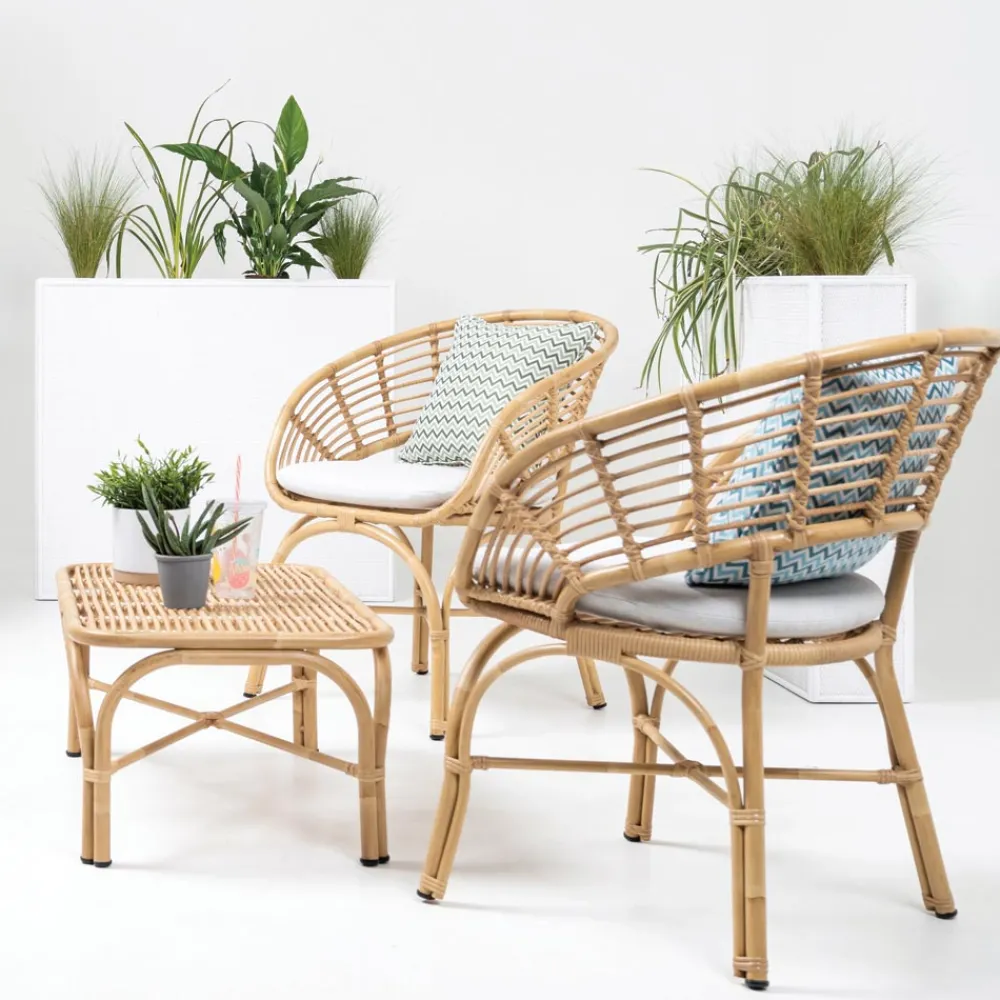 Polyrattanfasern sind die hochwertigsten auf dem Markt (VIRO/REHAU). Sie bestehen aus einem speziellen Polyethylen hoher Dichte (HDPE) und sind zertifiziert, um Witterungseinflüssen und selbst extremen klimatischen Einflüssen zu widerstehen, ohne dass die Struktur wesentlich beschädigt wird und die Farbechtheit erhalten bleibt. Wir empfehlen, diese Fasern gegebenenfalls mit Mikrofasertüchern, neutralen Reinigungsmitteln und warmem Wasser zu reinigen.
