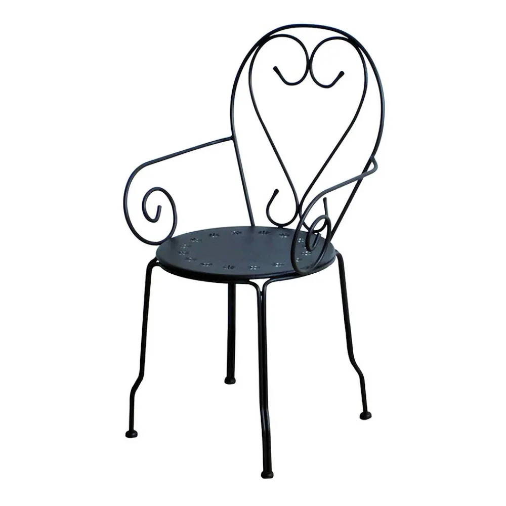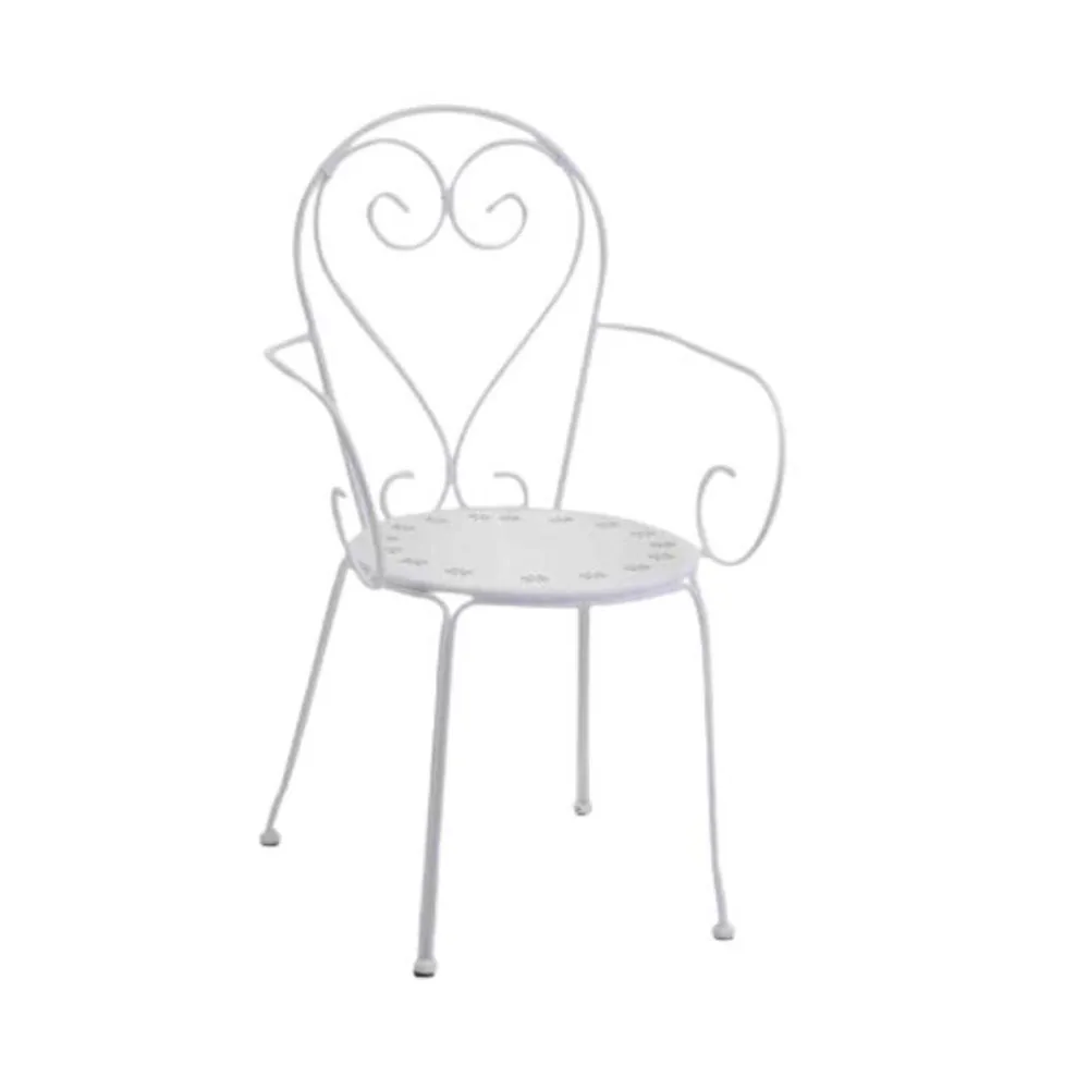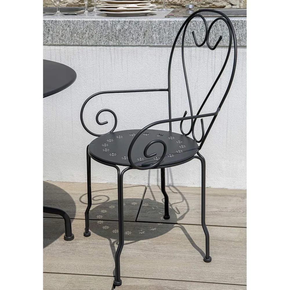 Dieser lackierte Metallsessel ist ein wahres Design-Juwel, perfekt, um jedem Außenbereich einen Hauch von Eleganz und Charme zu verleihen. Mit seinen weichen Linien und dem romantischen Geflecht in der Rückenlehne ist dieser Sessel nicht nur ein Möbelstück, sondern ein echtes Symbol für Stil und Komfort.