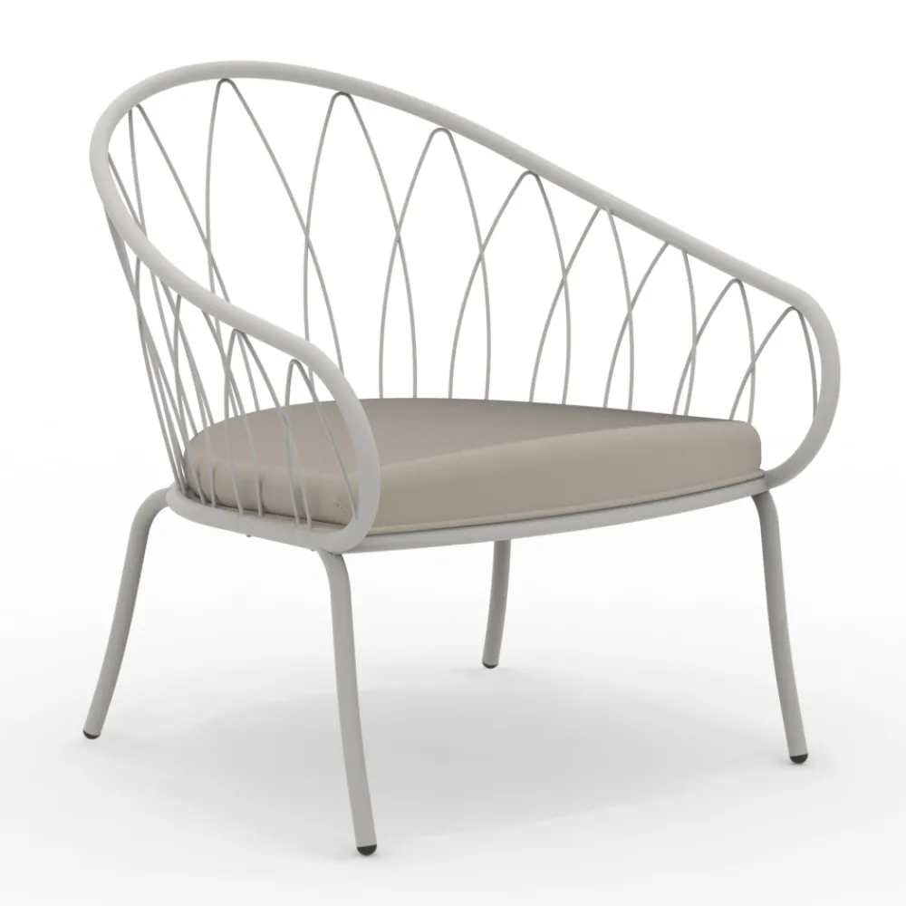Dieser raffinierte und schlichte niedrige Gartensessel verkörpert Outdoor-Komfort . Der schlanke, pulverbeschichtete Rahmen aus verzinktem Eisen fügt sich harmonisch in seine Umgebung ein, während das geometrische Design einen Hauch von raffinierter Modernität verleiht. Der Kissenbezug wurde so gewählt, dass er maximale Widerstandsfähigkeit gegen Witterungseinflüsse gewährleistet: Er ist wasserdicht und UV-beständig. Die verfügbaren Ausführungen passen perfekt zu jedem Außenbereich , vom üppigen Garten bis zur minimalistischen Stadtterrasse, und machen ihn zu einem vielseitigen Möbelstück für jeden Raum. Stellen Sie sich vor, Sie verbringen Stunden purer Entspannung, eingebettet in die Natur oder in Gesellschaft von Freunden, und lassen Sie sich von den weichen Kissen und der eleganten Silhouette dieses Sessels umhüllen, einem wahren Designjuwel für Ihren Außenbereich.