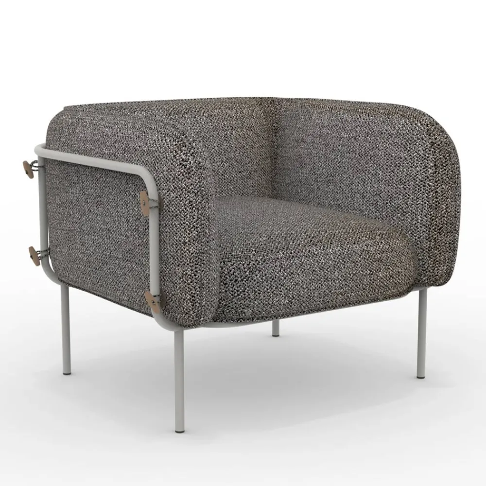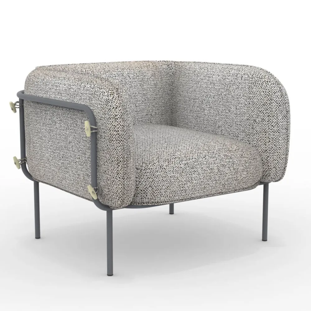 Outdoor-Sessel mit pulverbeschichteter verzinkter Eisenstruktur und Stoffsitz , vollständig in Italien hergestellt.