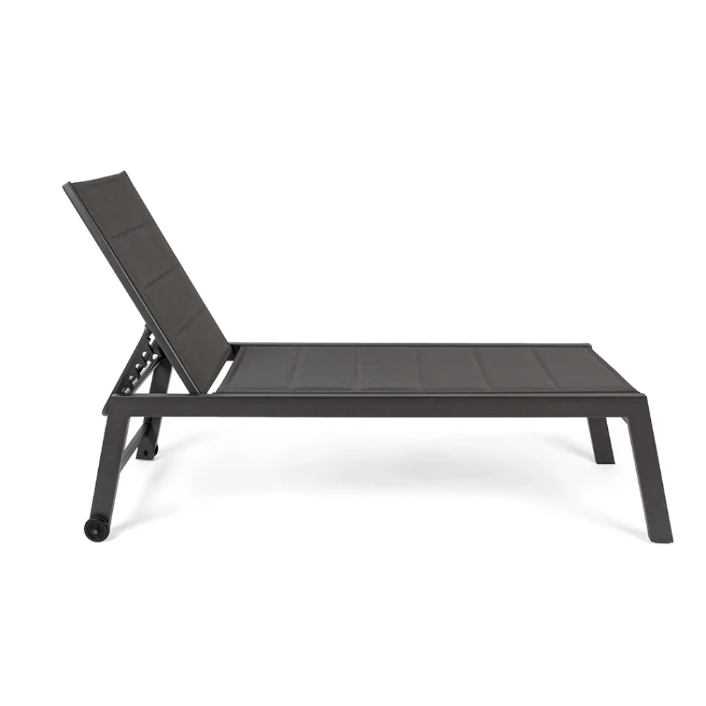Garten-Chaiselongue aus Aluminium mit Rädern für den Außenbereich.