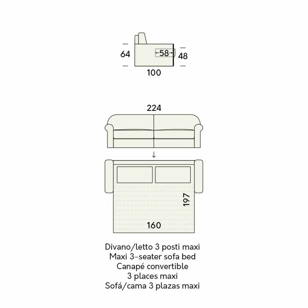 - L 224 x P 100 x H 93 cm (Matratze: L 160 x P 197 x H 14 cm).