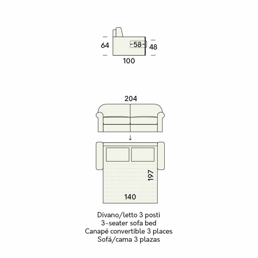 - L 204 x P 100 x H 93 cm (Matratze: L 140 x P 197 x H 14 cm);