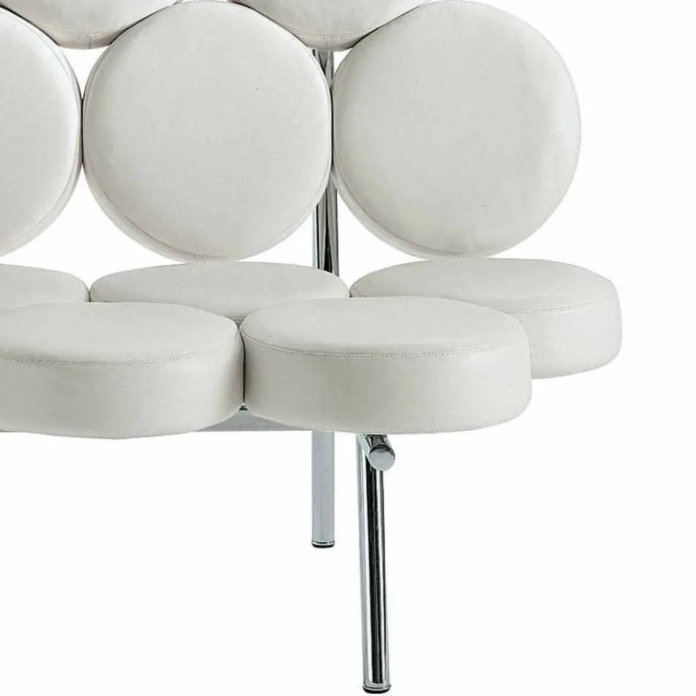 Modernes Wohnzimmersofa made in Italy mit verchromter Stahlstruktur , Sitz und Rückenlehne aus Polyurethangummi und Dacron mit äußerem Lederbezug . Eine Idee von Möbeln das die Eleganz des Leders und die Funktionalität seiner Form in sich vereint und einen bequemen und gleichzeitig originellen Sitz und einen originellen Stil bietet, ideal für diejenigen, die nach einzigartigen Artikeln suchen, die ihren Wohnbereich mit einer kreativen Note bereichern können. Sein exzentrisches Design unterstreicht seine Persönlichkeit und macht es auch zu einem originellen Dekorationselement , das jeden Raum charakterisieren und einzigartig machen kann, dessen unbestrittener Protagonist er wird.
