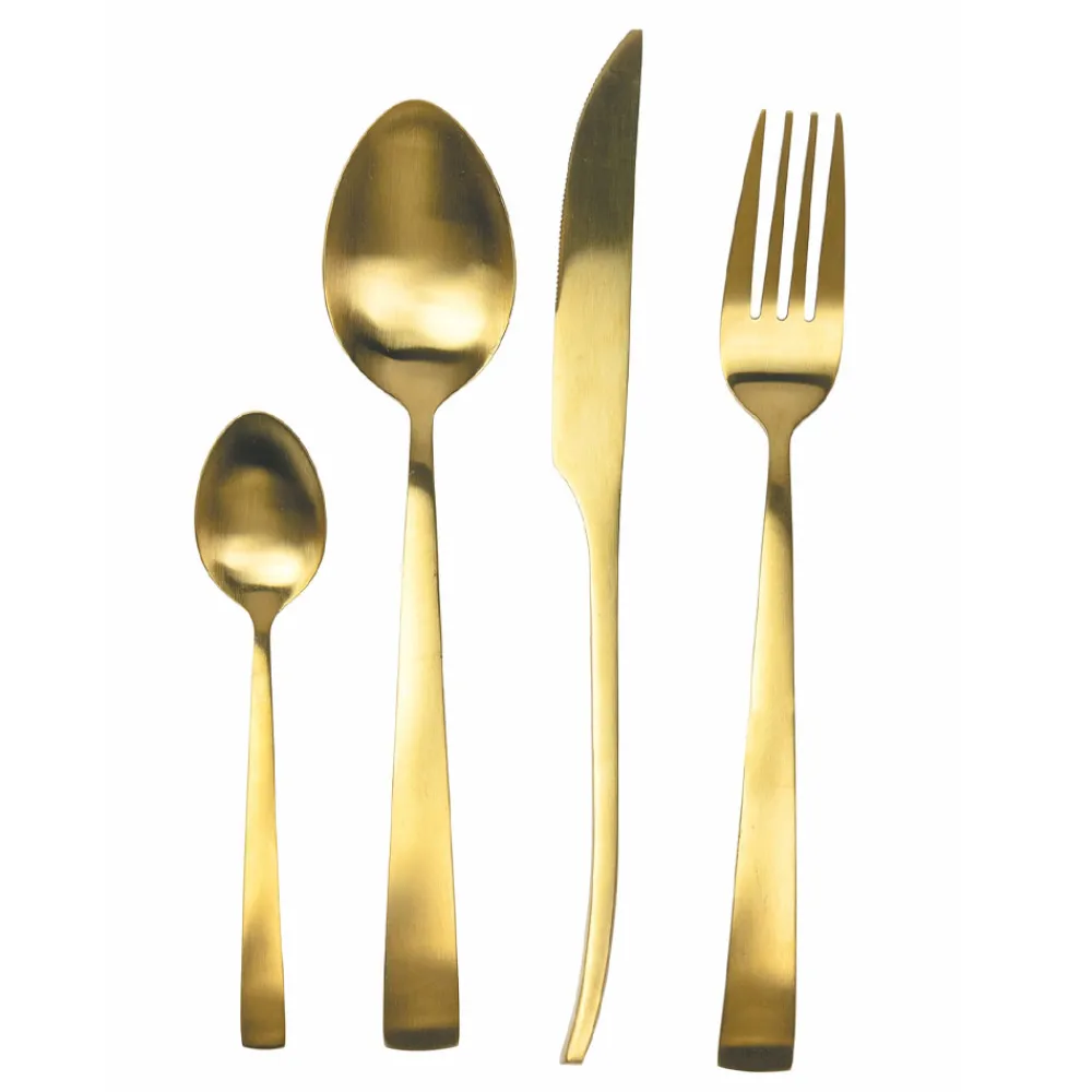 Das Besteck zeichnet sich durch ein schlankes und schlankes Profil aus und ist in den Materialfarben von Edelmetallen und in einem matten Finish erhältlich, das jedes Set aufwertet.