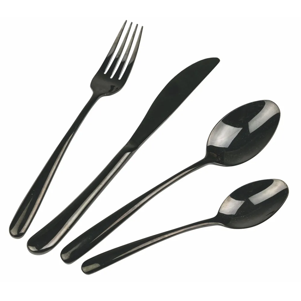 Glänzendes schwarzes Stahlbesteck im 24-teiligen Tropfendesign.