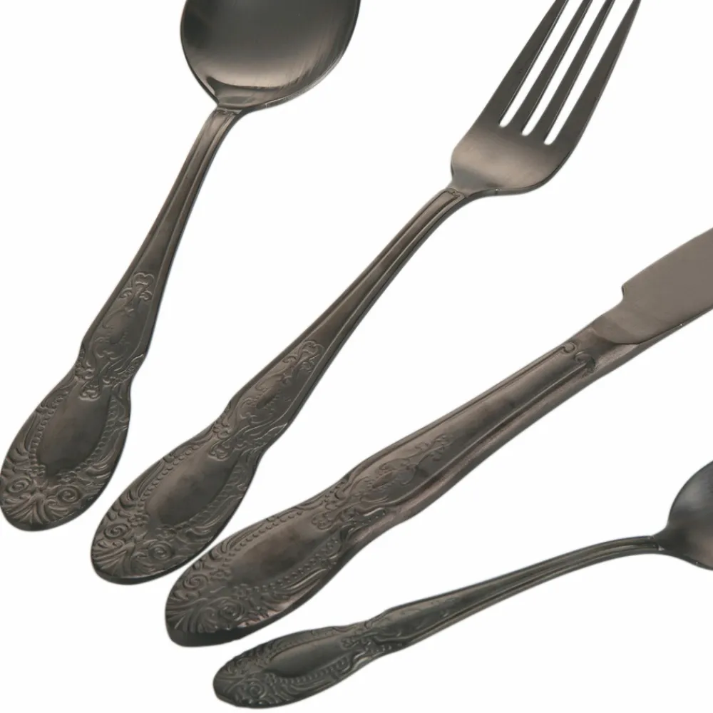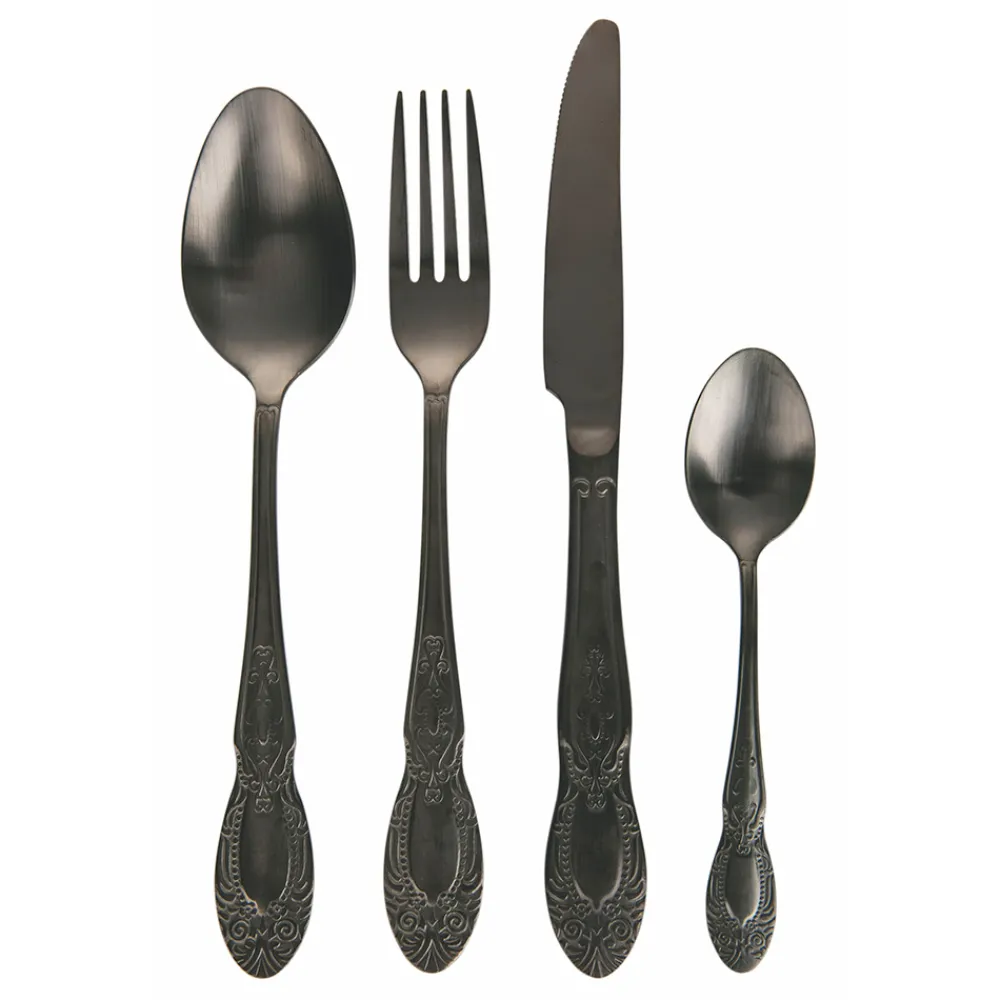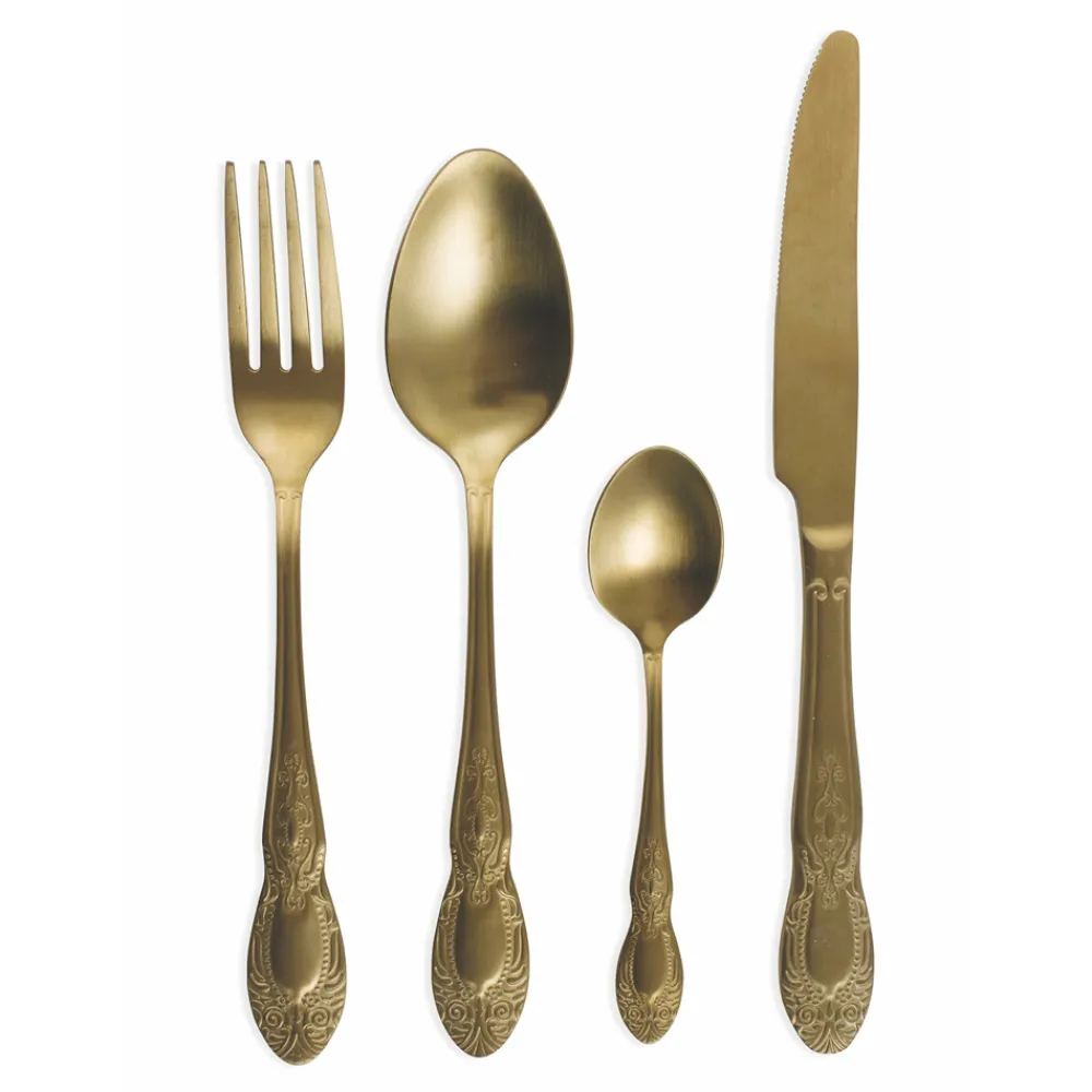 Komplettes Besteckset in satiniertem Gold oder schwarzem Design 24 teilig.