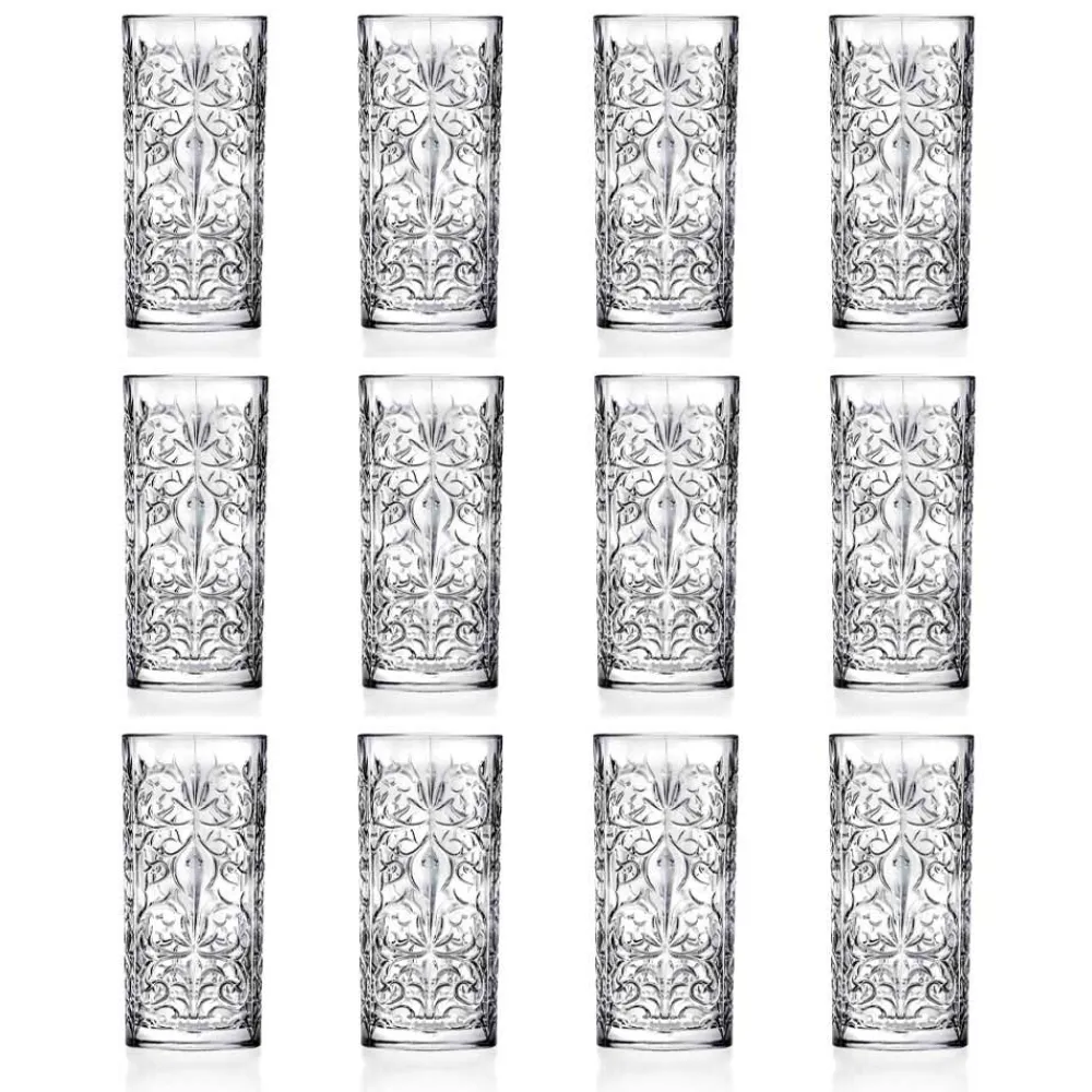 12 große Bechergläser für Longdrinks aus dekoriertem Öko-Kristall, Qualität und Luxus 100% Made in Italy.