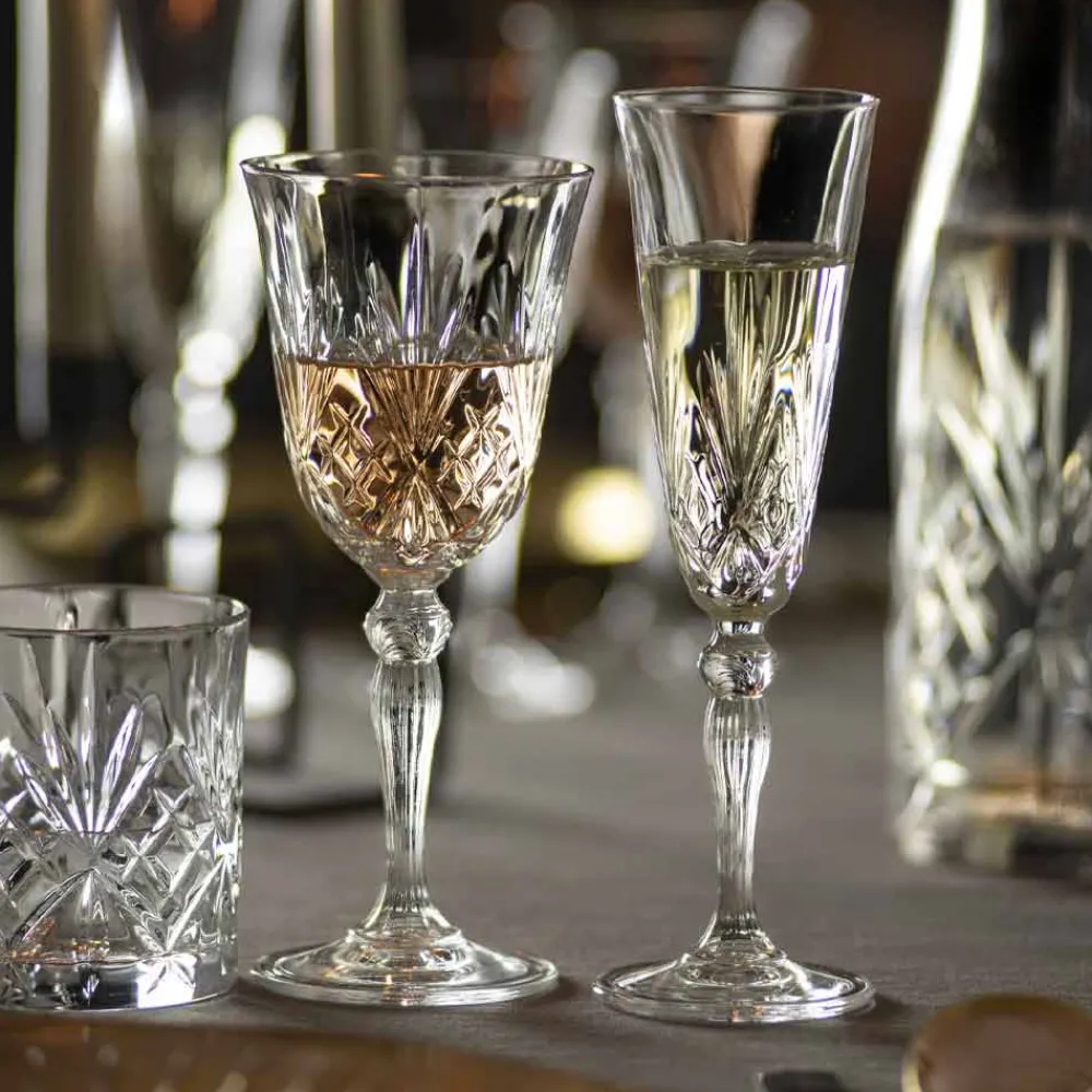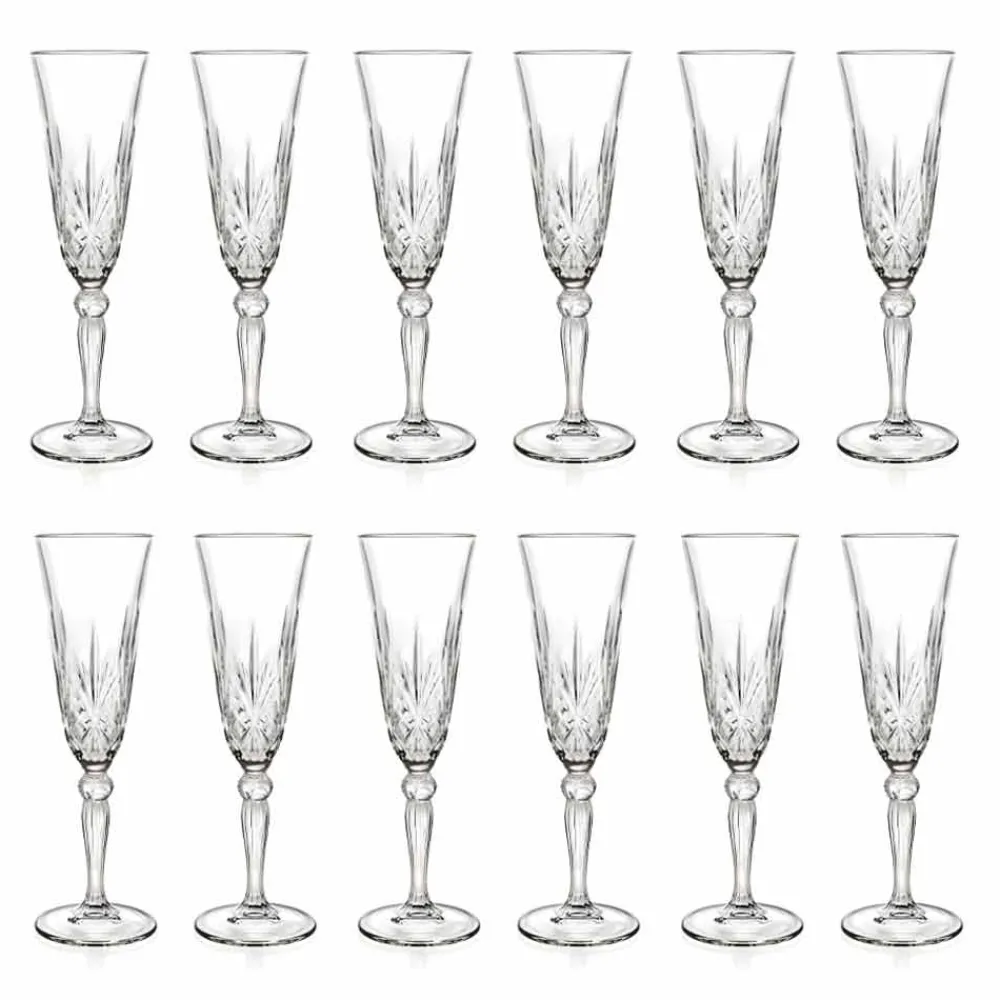 12 Flötengläser im ökologischen Kristalldesign im Vintage-Stil von hoher Qualität, 100% Made in Italy.