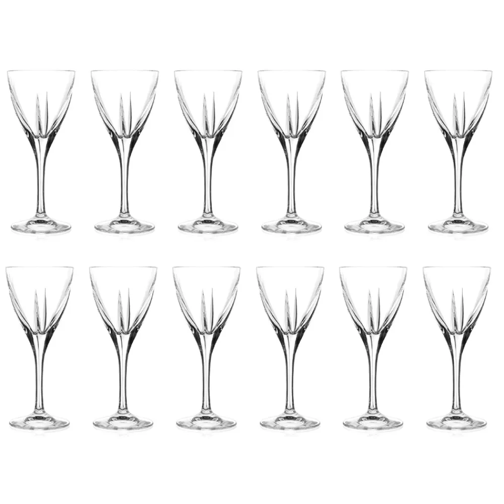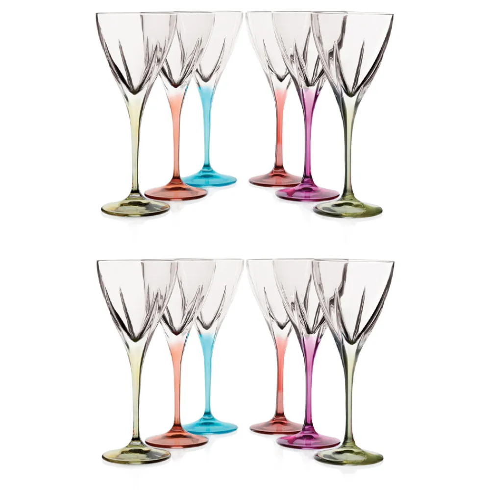 Set Weingläser aus transparentem oder farbigem Öko-Kristall 12-teilig 2 Größen made in Italy.