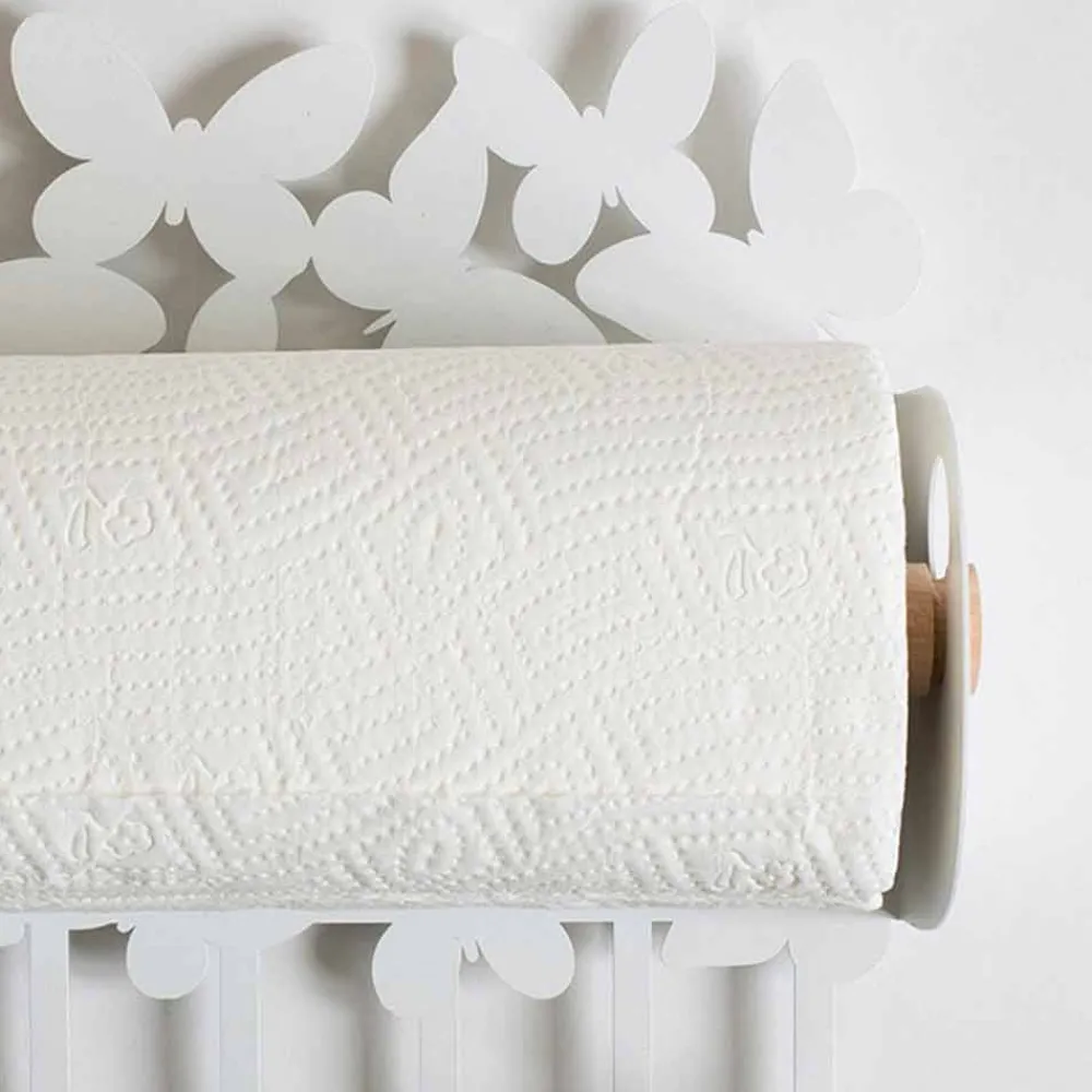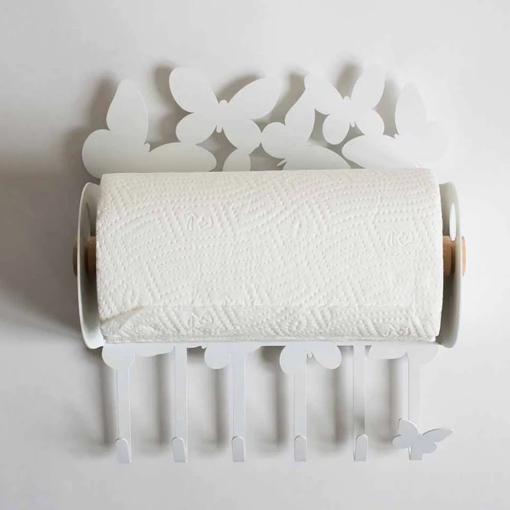 Moderner Küchenrollenhalter zur Wandmontage aus weißem oder beigefarbenem Eisen, handgefertigt in Italien.