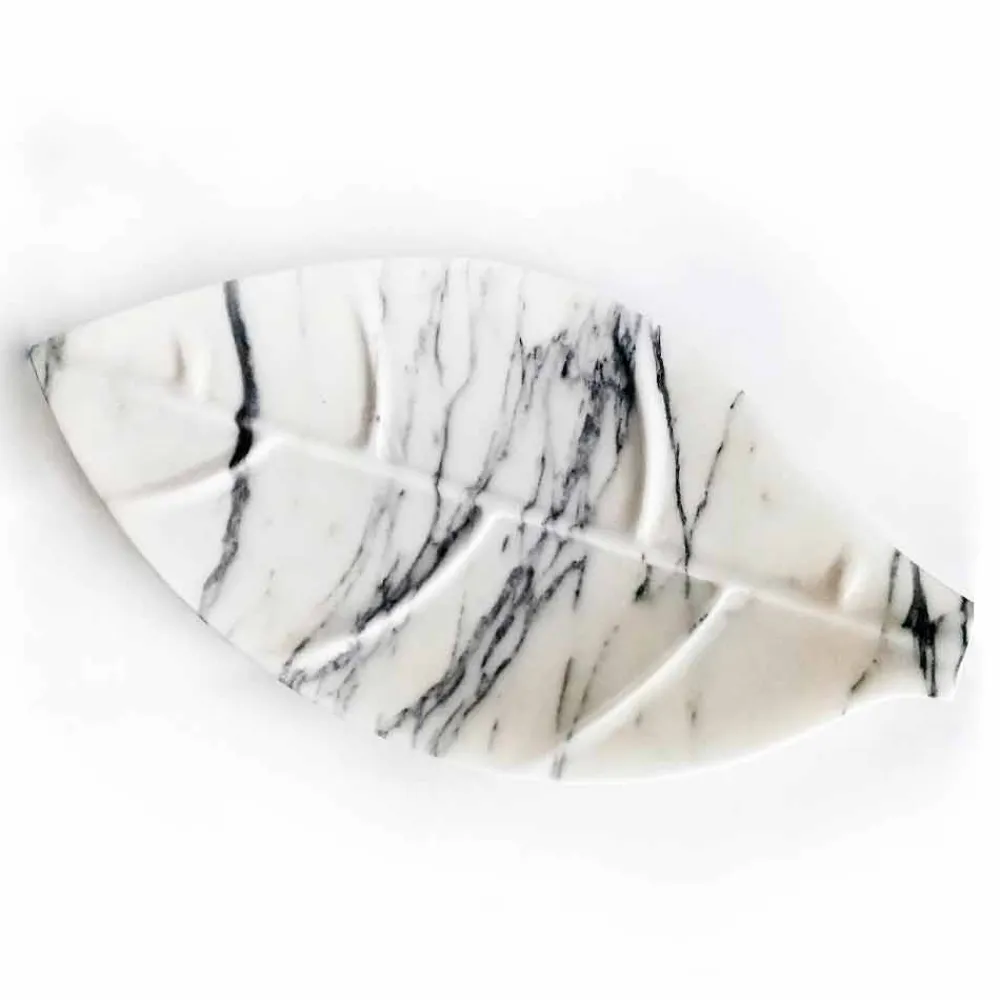 Herzstück, gekennzeichnet durch ein raffiniertes Design und seine Blattform mit geschwungenen und einfachen Linien, aber mit einer starken visuellen Wirkung. In Italien handgefertigt aus Arabescato-Marmor , einem Material, das dem Produkt seinen wunderbaren, raffinierten und eleganten Stil verleiht und sich ideal für die Dekoration der unterschiedlichsten Räume des Hauses eignet . Die Kombination von Materialien, Oberflächen und Techniken zusammen mit der wunderbaren Arbeit der Meister ermöglicht es, ein qualitativ hochwertiges Endprodukt mit Liebe zum Detail zu erhalten, das sich perfekt für die Dekoration von Umgebungen mit einem zeitgemäßen und raffinierten Geschmack eignet.