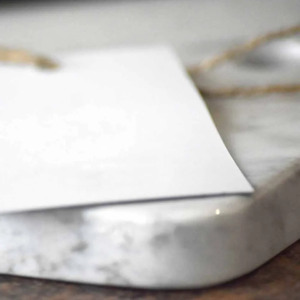 Rechteckiges Schneidebrett aus weißem Carrara-Marmor Made in Italy.