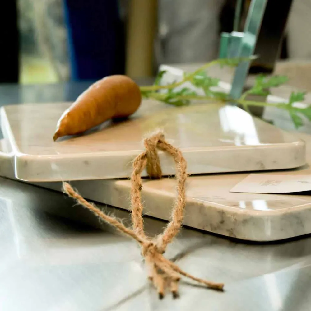 Dieses Schneidebrett zeichnet sich durch ein klares und elegantes Design aus , das es perfekt für Küchen mit raffiniertem Geschmack macht und auf den Tisch bringt, um eine wundervolle, raffinierte Atmosphäre zu schaffen. Was dieses Produkt auszeichnet, ist der kostbare weiße Carrara-Marmor, aus dem es hergestellt wird. Es besteht aus einem homogenen weißen Hintergrund mit feinkörnigen grauen Adern.