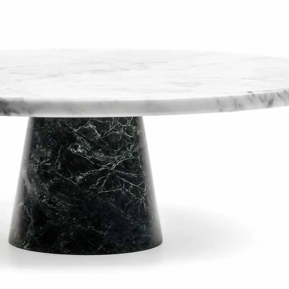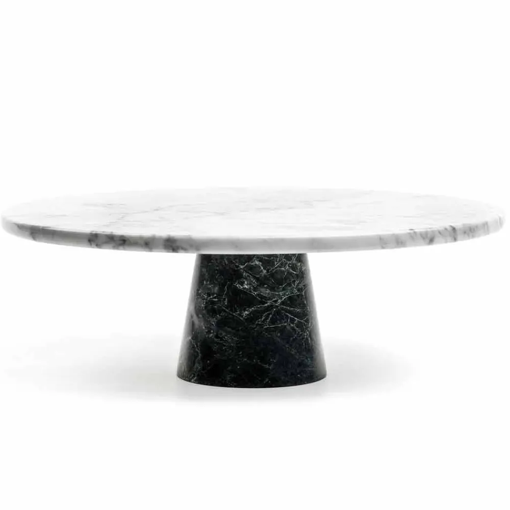 Moderner Tortenständer aus weißem Carrara-Marmor und schwarzem Marquinia-Marmor Made in Italy.