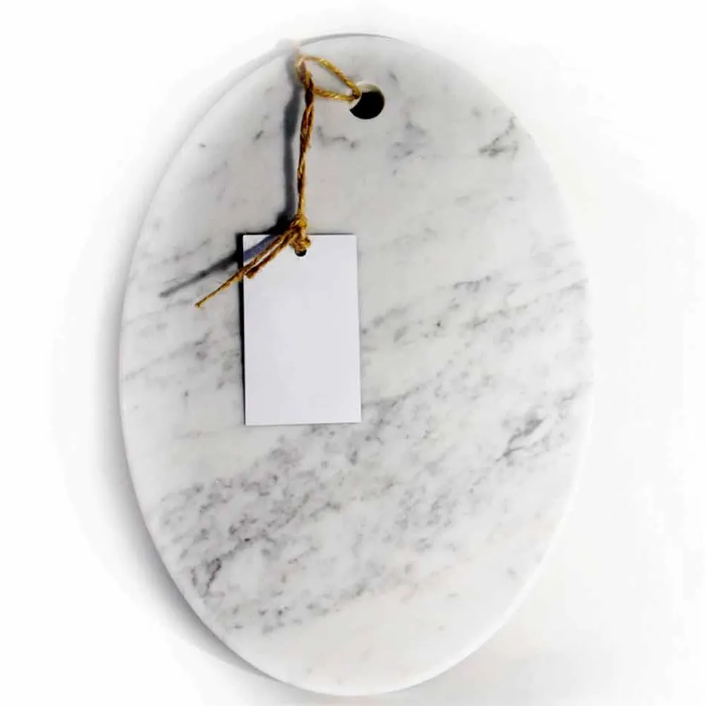 Ovales Schneidebrett aus modernem Design aus weißem Carrara-Marmor Made in Italy.