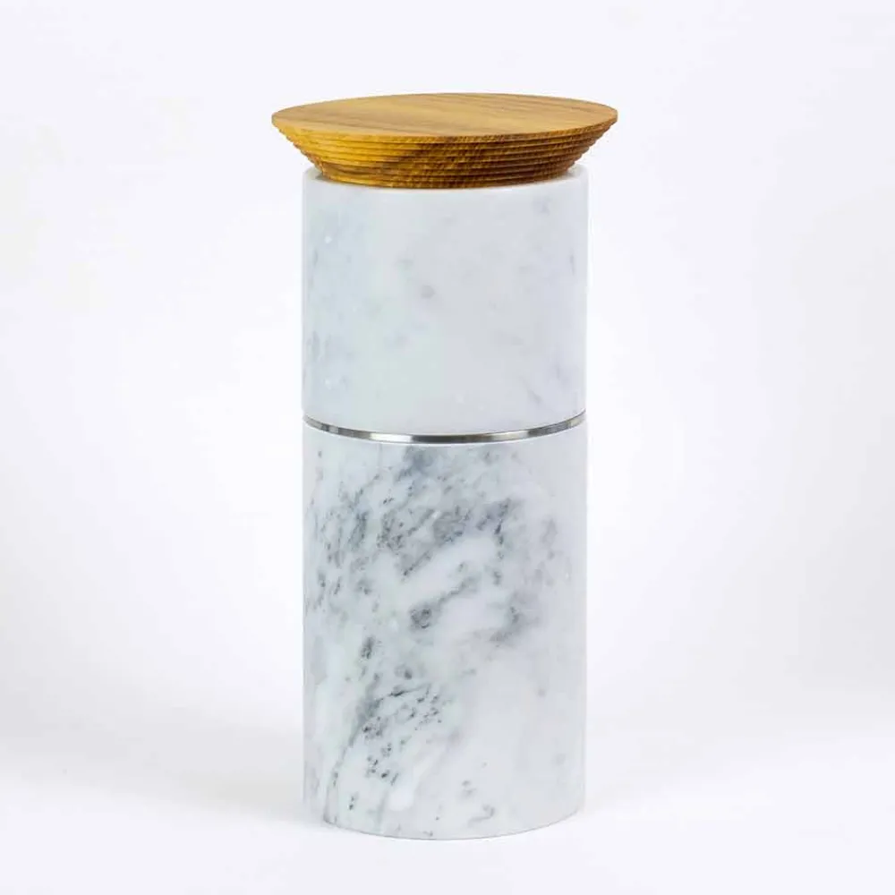 Küchenzubehör Turmkomposition aus Marmor, Holz und hochwertigem Stahl made in Italy.