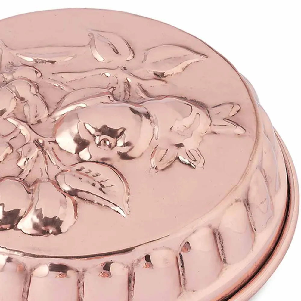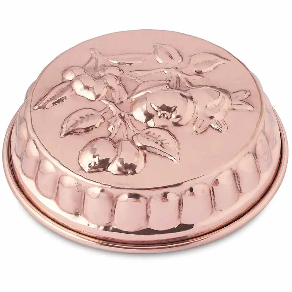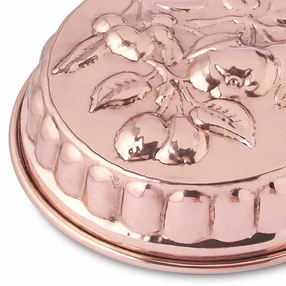 Runde Backform mit Fruchtdekor in Handarbeit made in Italy aus verzinntem Kupfer.