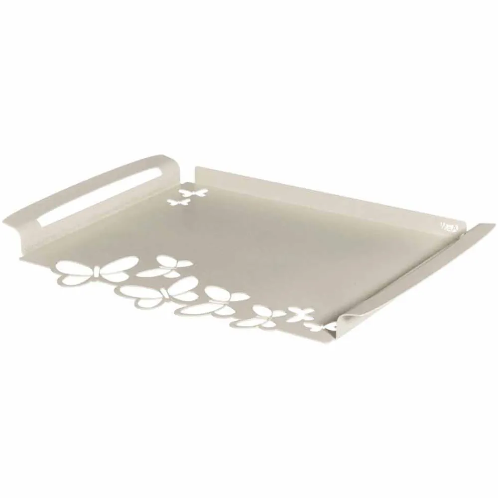 Modernes rechteckiges Serviertablett aus weißem, beigem oder elfenbeinfarbenem Eisen, handgefertigt in Italien.