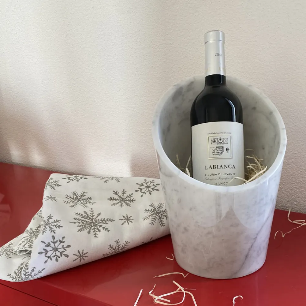 Moderne Gletscher für Wein oder Champagner aus weißem Carrara Marquinia Marmor Made in Italy.