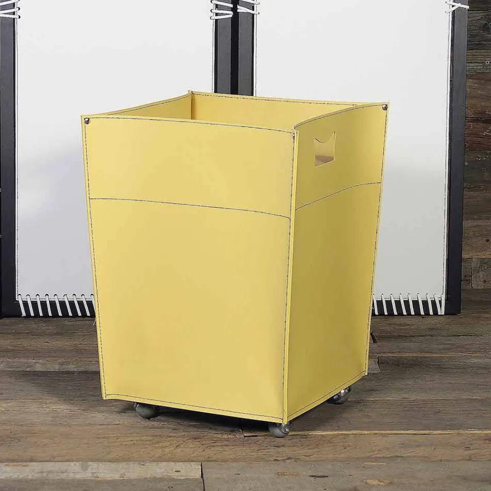 Holzhalter aus Leder, Holzsockel auf dem Boden mit Gummirädern.