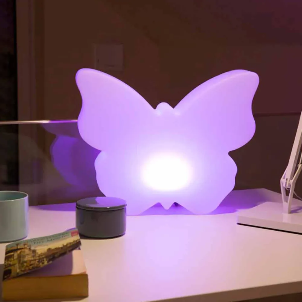 Stützlampe mit Attack aus weißem Polyethylen in Form eines Schmetterlings von modernem Design für drinnen oder draußen.
