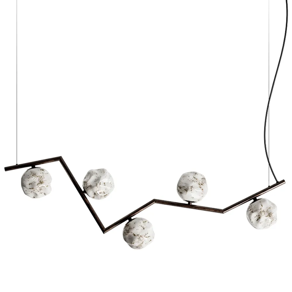 Dieses Produkt ist die perfekte Verkörperung des mediterranen Stils: warm, natürlich und materiell. Jede Kugel aus Muranoglas wurde von Glasmachermeistern von Hand gefertigt, um die Erinnerung an die raue Schönheit des Steins in Erinnerung zu rufen. Das mit Metallpulver angereicherte Glas wird jedes Mal fachmännisch geformt, um einzigartige und niemals reproduzierbare Stücke zu schaffen, und das ist der wahre Wert dieses Elements. Die dunkle Messingstruktur verleiht ihm einen rustikalen Touch, der ihn perfekt für jede Umgebung macht und ihm einen modernen und zeitlosen Look verleiht.