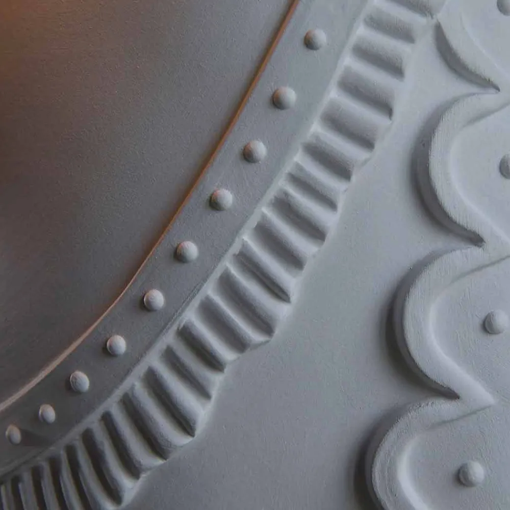 Die Lampe besteht aus einem mattweißen Keramiklampenschirm als Material, das den Ursprung, die Formbarkeit, die Schöpfung darstellt und direkt zu den Ursprüngen unserer Kultur führt.