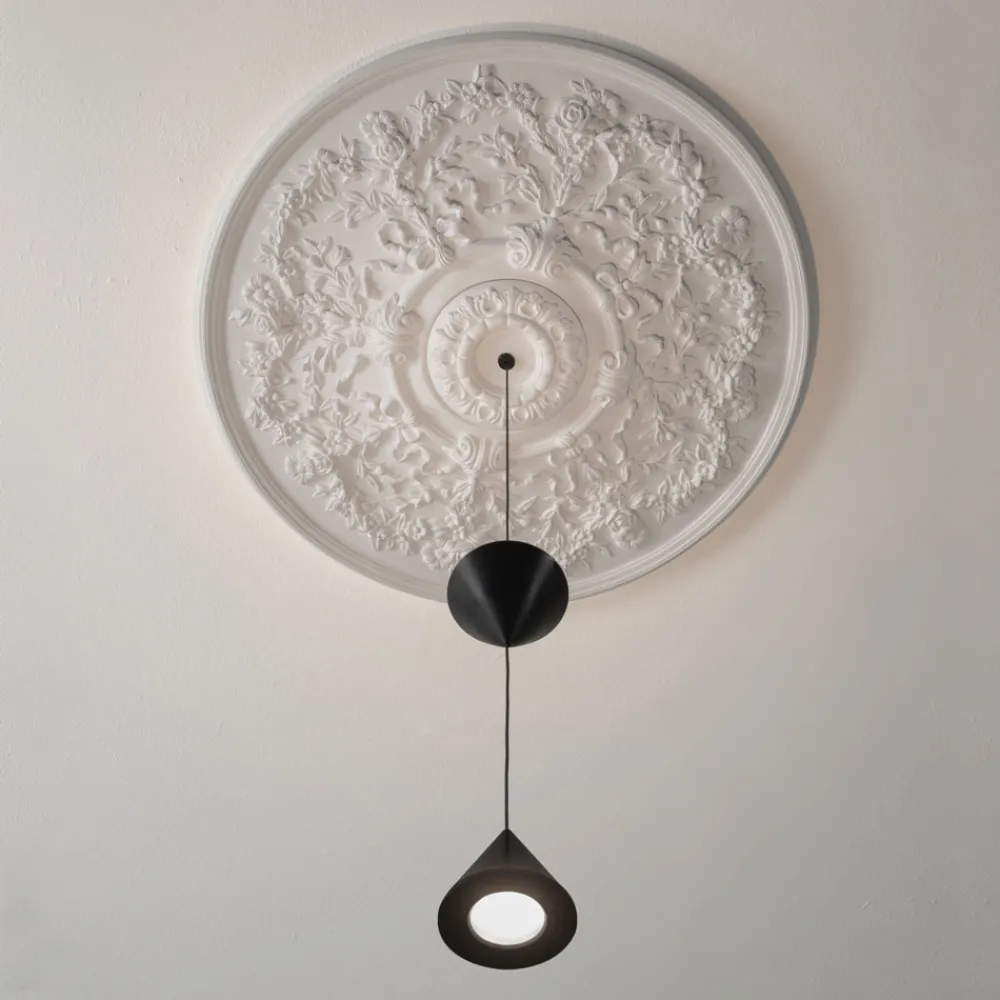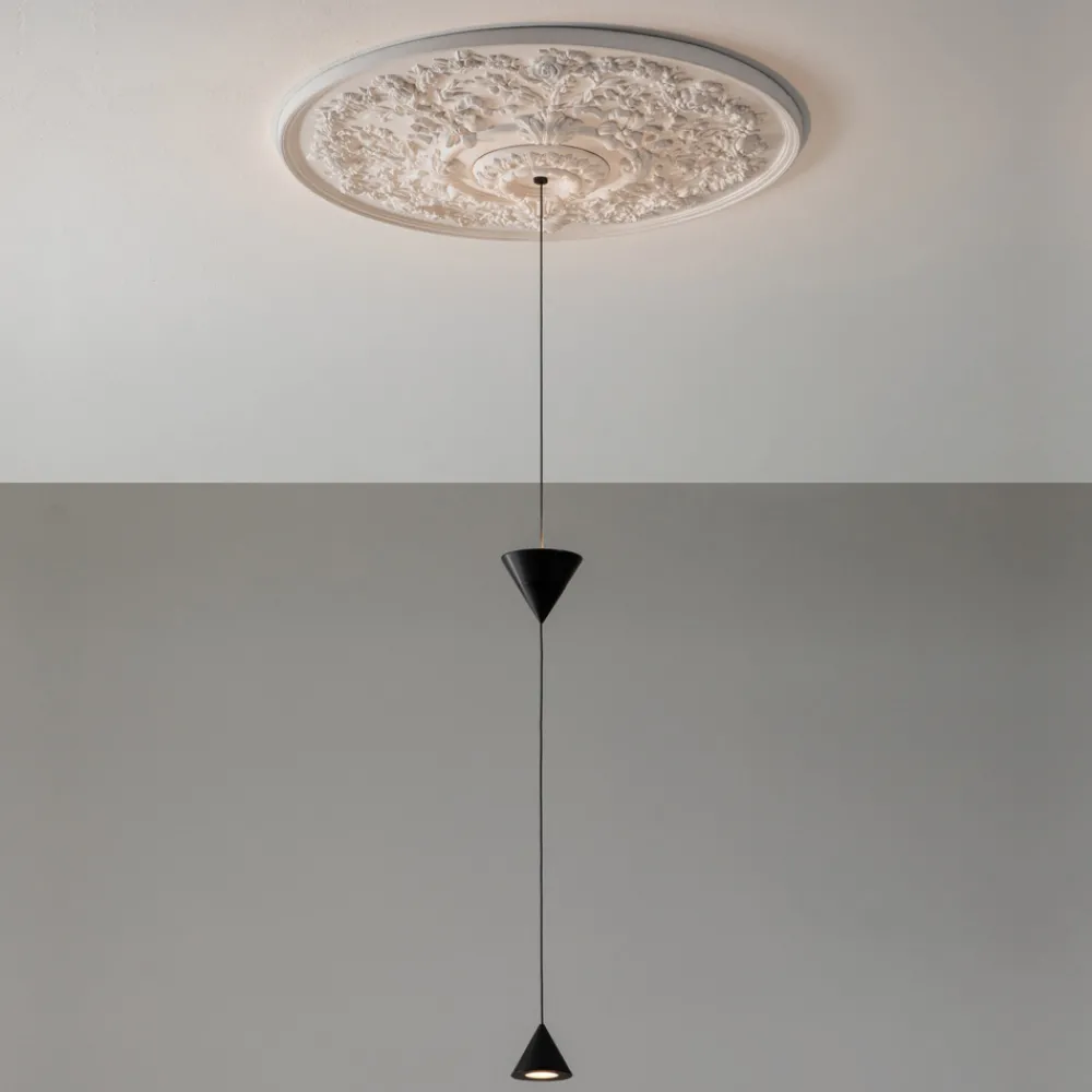 Pendelleuchte aus weißem Gips und schwarzem Aluminium mit Kegeln, 2 Größen hergestellt in Italien.