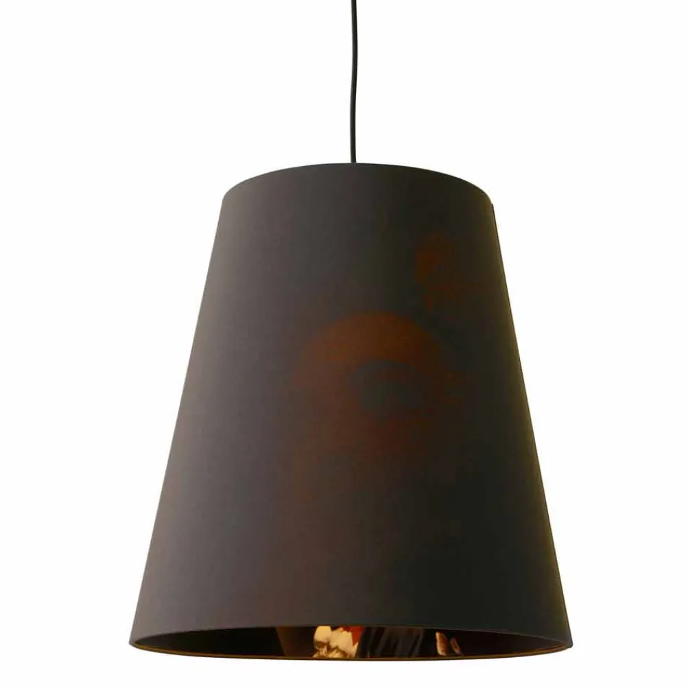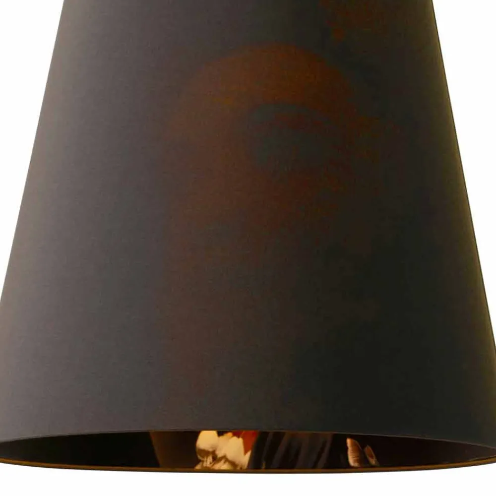 Diese originelle und einzigartige Hängelampe wurde mit dem Ziel entwickelt, die Welt der technischen und dekorativen Beleuchtung koexistieren und koexistieren zu lassen. Eine Ergänzung, bei der Ästhetik und Funktionalität zugunsten eines zeitgemäßen Designs kombiniert werden, das aus einem Lampenschirm aus anthrazitfarbenem Stoff besteht , der im Inneren einen „Ich sehe nicht“ -Effekt erzeugt, der seine Hauptbesonderheit verbirgt: einen modernen Innendruck des Gesichts von eine Frau, die in der Lage ist, suggestive Atmosphären zu wecken und traditionelle Pläne zu brechen.