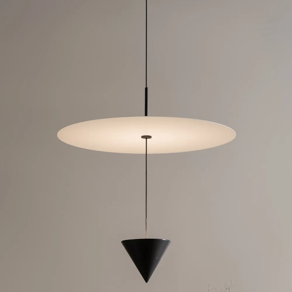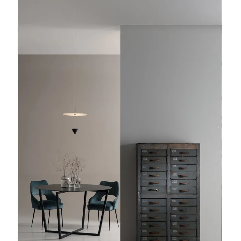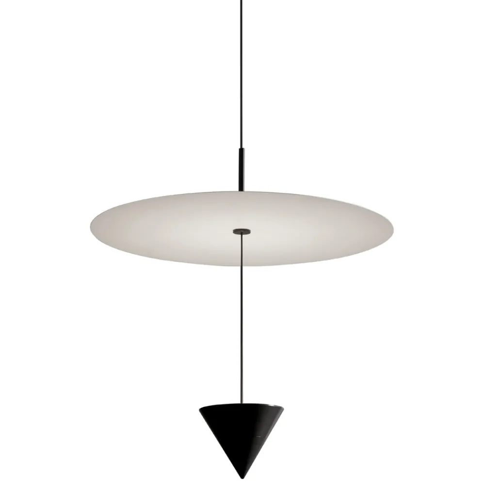 Design Pendelleuchte aus Aluminium mit weißer Scheibe und schwarzem Kegel, 2 Größen made in Italy.