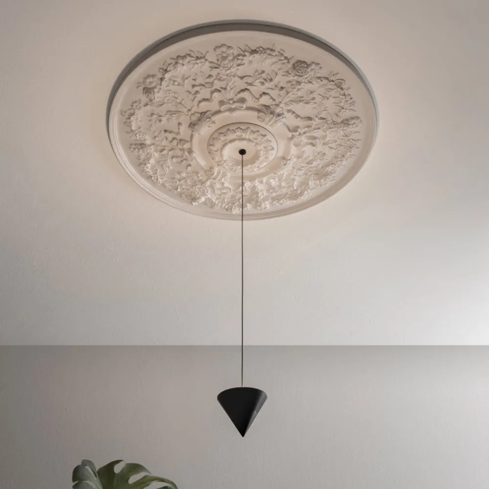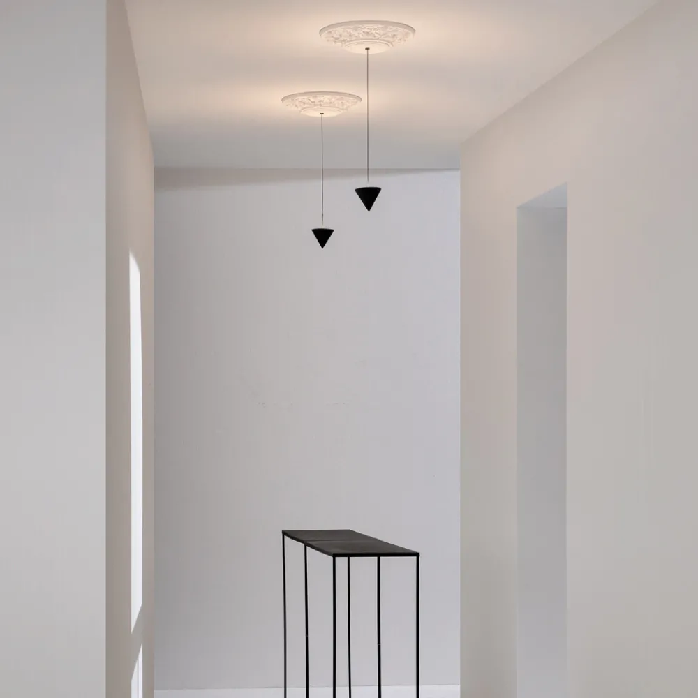 Pendelleuchte aus weißem Gips und schwarzem Aluminium mit Kegel, 2 Größen hergestellt in Italien.