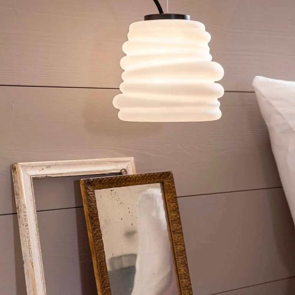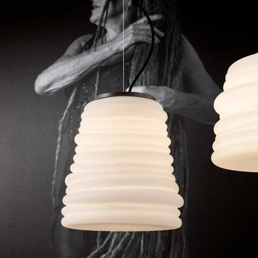 Die Leuchte ist mit einem Satin – Weiß Glaswasc für ein völlig italienisches Design, die durch unkonventionelle Experimentier- und kontinuierliche Forschung zwischen Tradition und Moderne gemacht, zu überraschen , ist in der Lage, es wagt , und erregt, so dass Sie Ihre Emotionen durch einen originellen und persönlichen dekorativen Einsatz auszudrücken des Lichts.