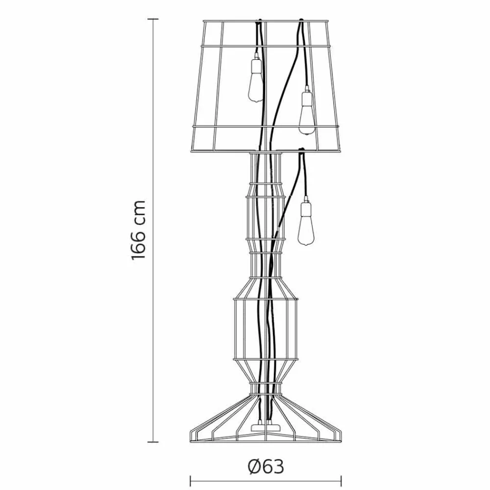 Diese originelle und einzigartige Stehlampe verfügt über ein Design aus Metall mit geformten und geschweißten Bügeleisen. Die Besonderheit besteht in seinem essentiellen Skelett, das einem industriellen und minimalistischen Stil Leben einhaucht, der bereit ist, eine wichtige Säule in der Zielumgebung zu werden.
