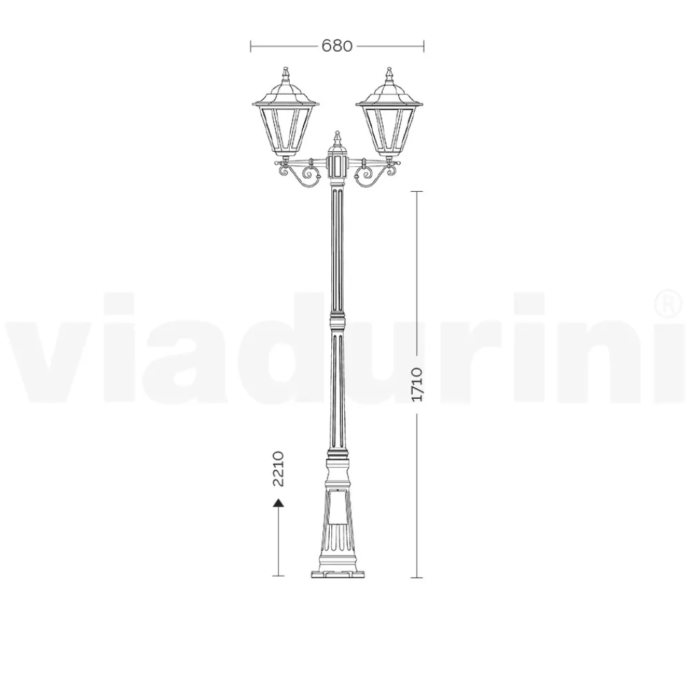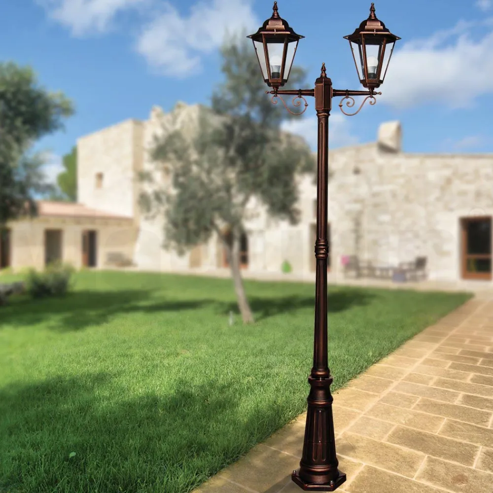 Diese elegante Außenlampe aus Aluminiumdruckguss vereint Raffinesse und Langlebigkeit in einem Design, das die Essenz des klassischen Geschmacks einfängt. Das vielseitige und zeitlose Finish macht diesen Laternenpfahl zu einer idealen Ergänzung für jede Art von Umgebung, von der traditionellsten bis zur modernsten. Die schlanken Linien der Struktur erheben sich anmutig und gipfeln in 2 Laternen, die ein warmes und einladendes Licht verbreiten, ideal, um in jedem Außenbereich eine eindrucksvolle Atmosphäre zu schaffen. Mit seinem eleganten Aussehen und seiner langlebigen Konstruktion ist dieser Laternenpfahl die perfekte Wahl für alle, die Gärten, Parks oder Einfahrten elegant verschönern und beleuchten möchten.