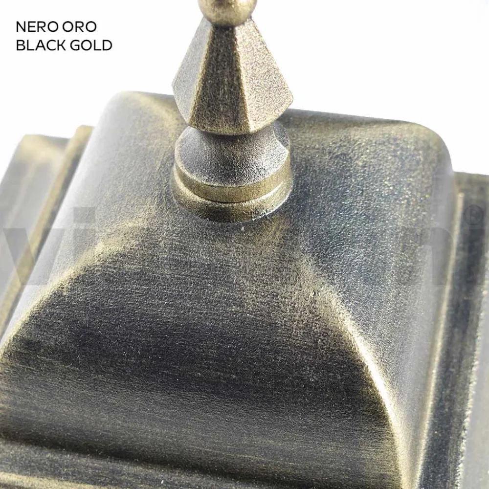 Mit dieser Straßenlaterne verleihen Sie Ihrem Außenbereich einen Hauch klassischer Anmut . Sie ist aus robustem Aluminiumdruckguss gefertigt und zeichnet sich durch ihre außergewöhnliche Haltbarkeit und ihre Fähigkeit aus, den Elementen mit Eleganz zu trotzen. Die Oberfläche wertet jeden Garten oder jede Auffahrt auf und verbreitet eine visuelle Wärme , die ebenso einladend wie charmant ist. Die beiden oberen Kuppeln und das Glas sorgen gemeinsam für eine optimale Lichtverteilung, während die handwerklichen Details dem Stück einen unverwechselbaren Charakter und antiken Charme verleihen. Ob entlang eines romantischen Weges im Garten oder als Willkommenspunkt am Eingang, diese Laterne ist nicht nur ein funktionales Element, sondern ein wahres Symbol für Stil und Qualität.