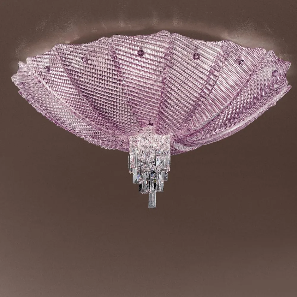 Handgefertigte Deckenlampe aus venezianischem Glas und Metall Made in Italy.
